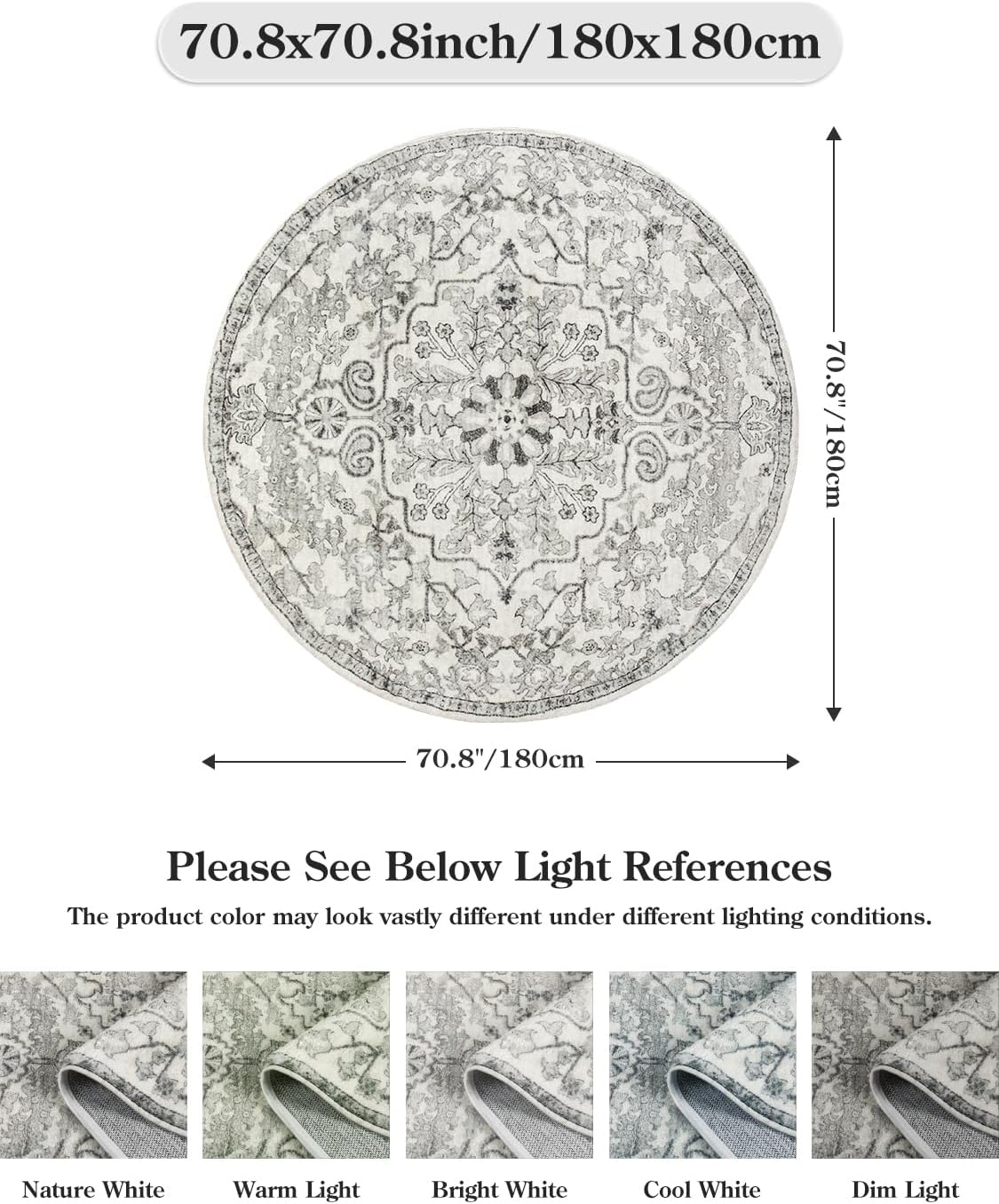 - [Soft & Skin-Friendly] - Our circle living room area rug made of faux wool, if you walking barefoot on the carpet, you will have the feeling of stepping on clouds! All of our washable rugs have passed Environmental Certification. You can be sure that our area rugs are ECO-friendly and skin-friendly