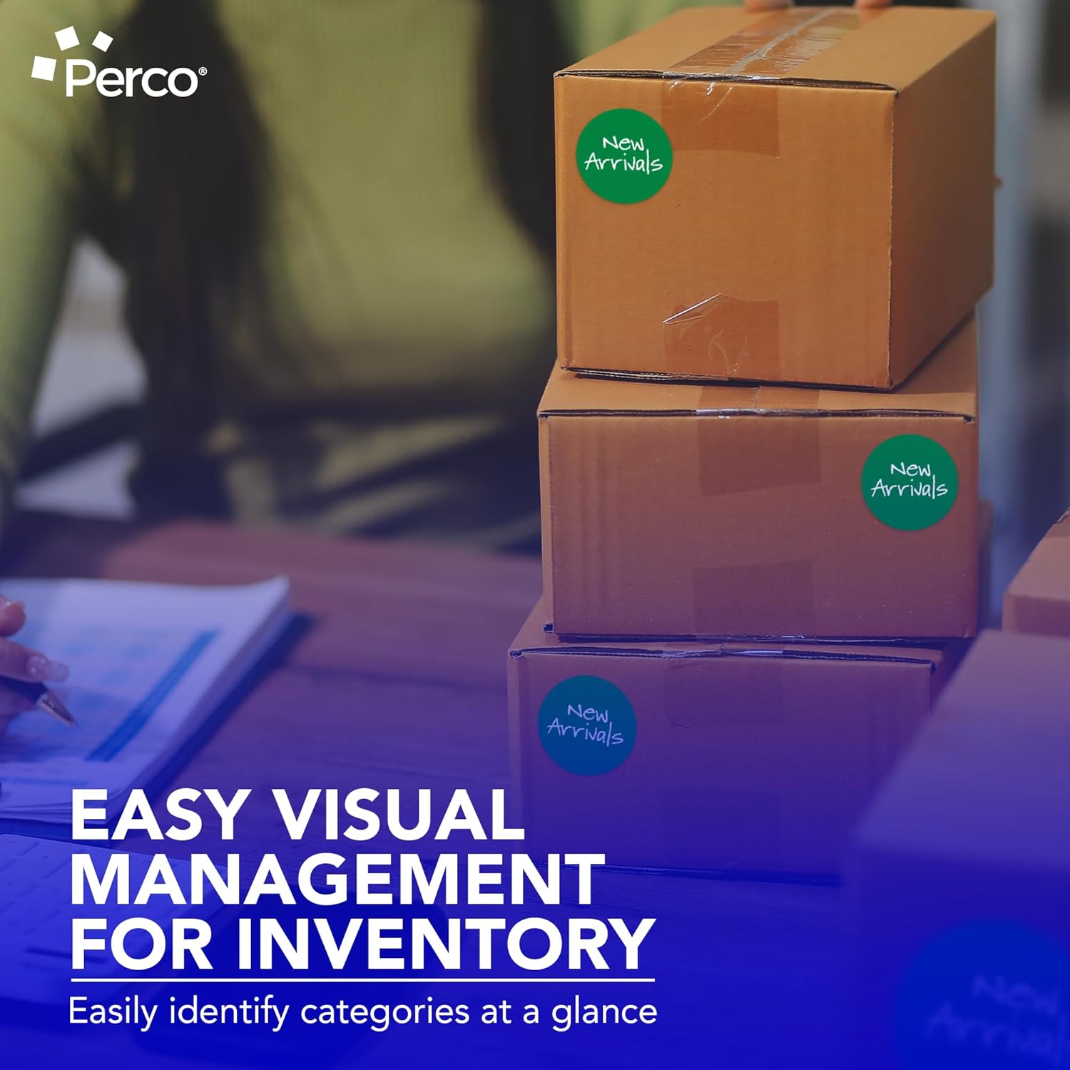 Perco Green 3-Inch Round Circle Dot Sticker Labels with Easy Peel Perforation - 500 Labels per Roll - Strong Adhesion, Vibrant Colors for Organizing, Crafting & More - Made in USA