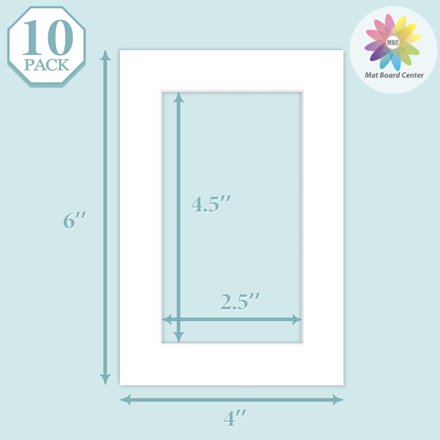 MBC MAT BOARD CENTER, 10 Pack 4x6 for 3x5 White Picture Mats Frame Mattes, Bevel Cut, Acid Free, 4-ply Thickness