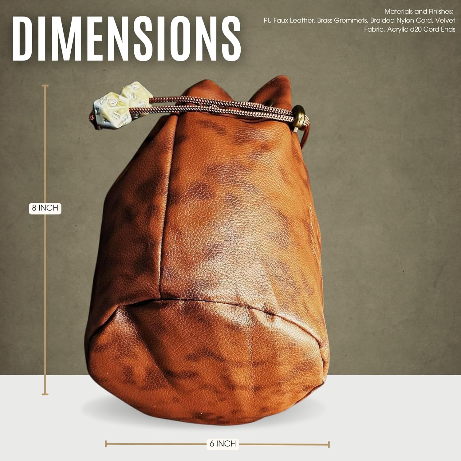 - Stylish Design: Made from high quality chestnut/walnut spotted textured PU leather and the drawstring cord is adorned with 2 real D20 cord ends.