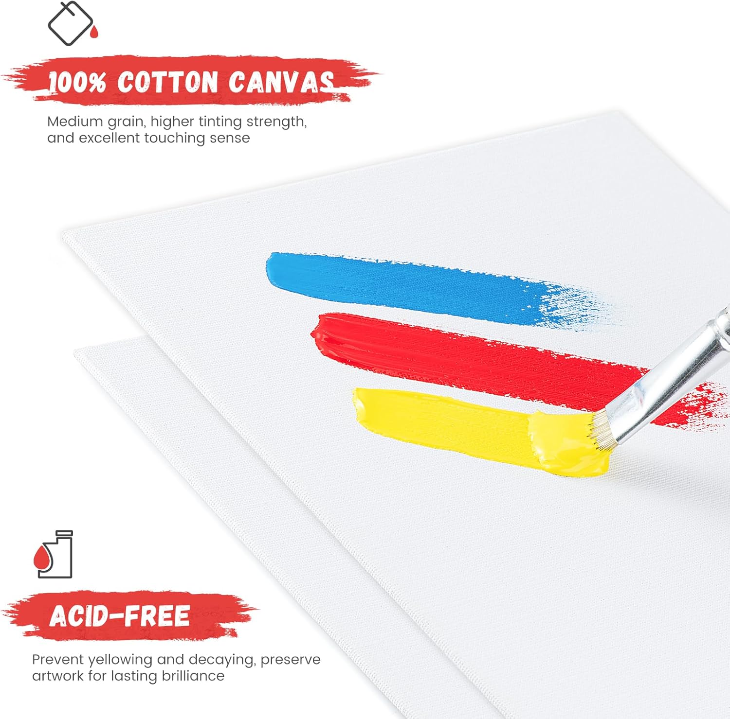 - 【Canvases for Painting Value Packs】12 packs 9x12 inch blank canvas boards for painting, which is great for artists of kids to adults. A large number of painting canvases art supplies are suitable for school, painting classes, kids DIY craft use, and don't worry about running out of painting supplies for your artwork!
