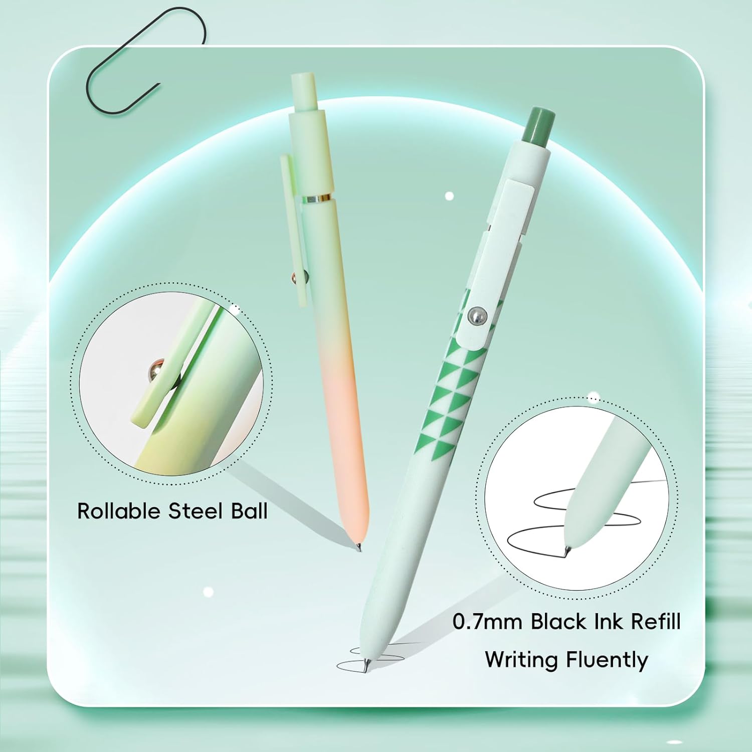 Gel Pens,10 Pcs Medium Point Smooth Writing Pens Cute Pens for Women, High-End Series 0.7mm Black Ink Pens for Journaling Note Taking, School Office Supplies (10 Pcs Gradient and Geometric)