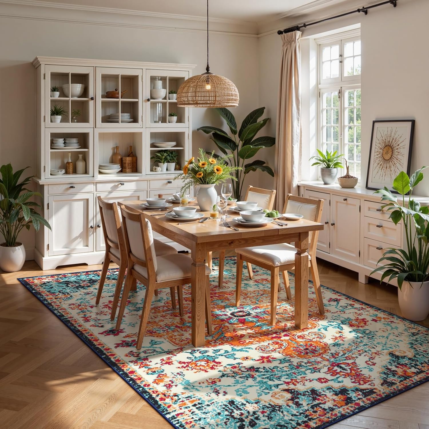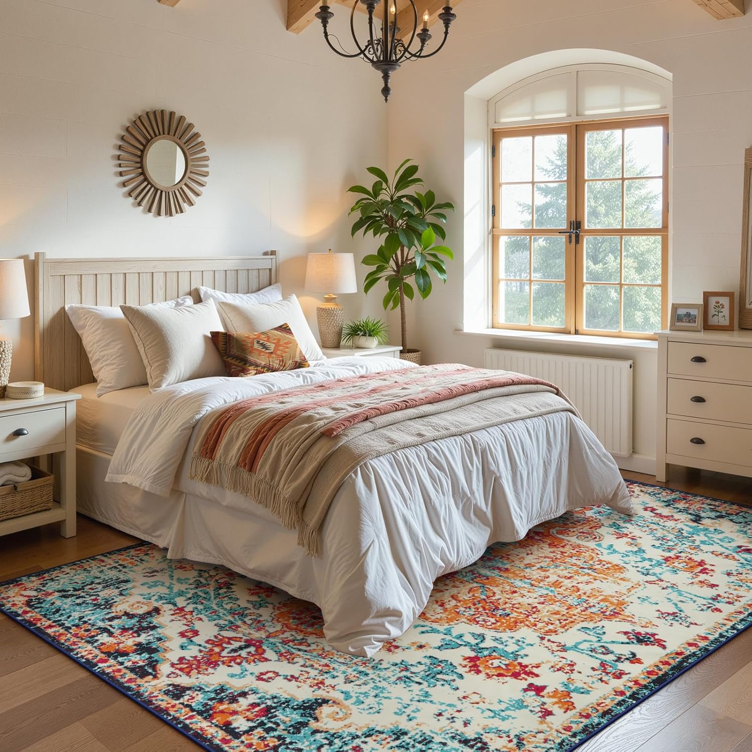 - [Soft Throw Rug] - Our boho area rugs 8x10 throw rug are made of enhanced synthetic sturdy fibers, it's soft like you are walking on the clouds or cotton balls, put in your bedside so you won't have to put your feet down on the cold floor in the morning!