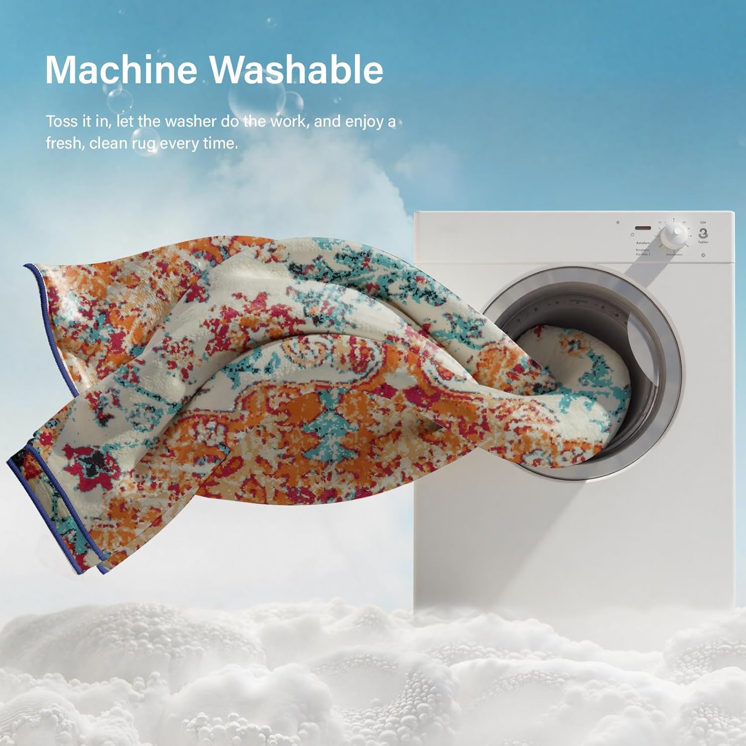 Lahome Orange 6x9 Area Rugs Boho Washable Area Rug for Bedroom,Large Area Rugs for Living Room Dining Room,Bohemian Vintage Non Slip Low Pile Indoor Accent Carpet for Home Office(6x9ft,Orange)