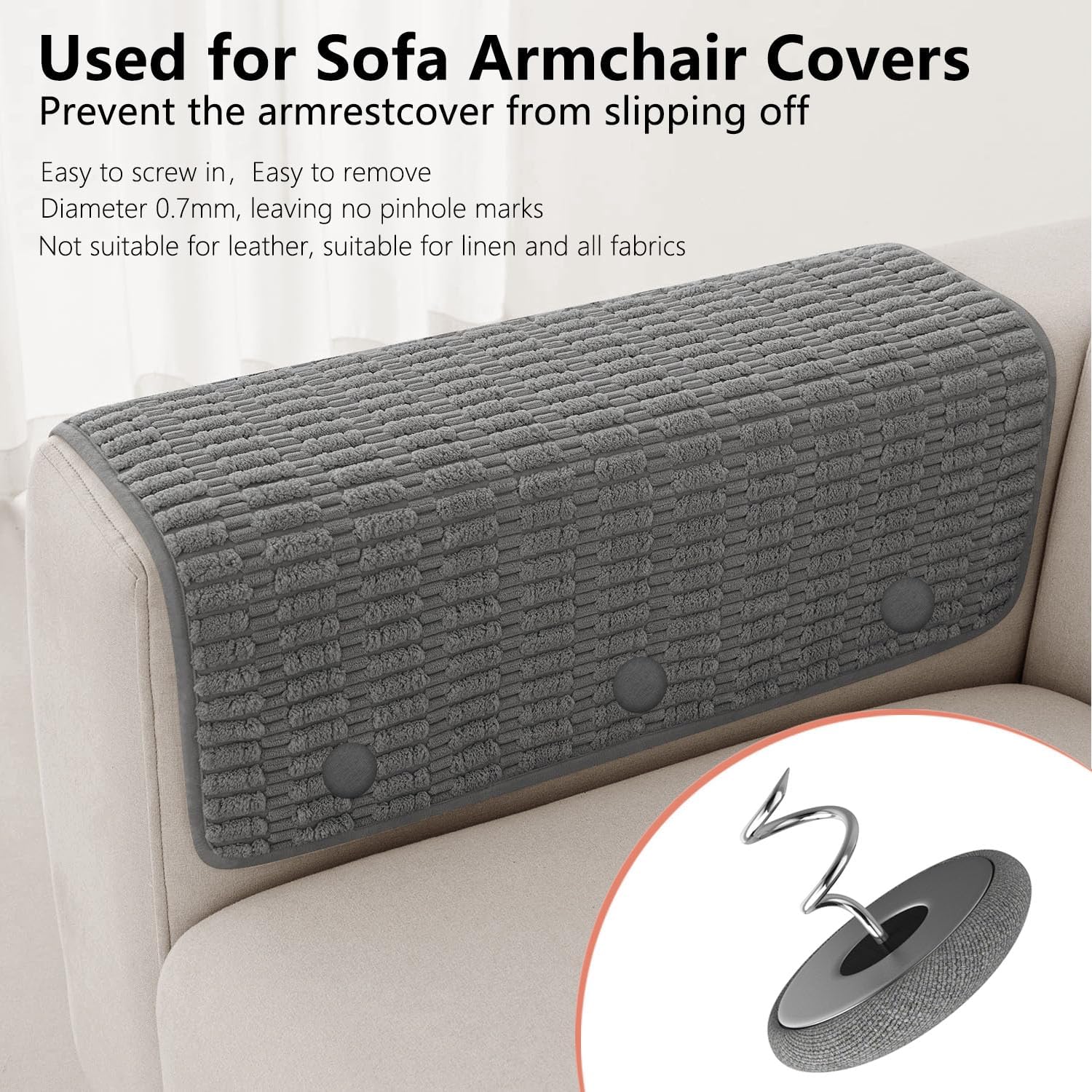 - The sofa cover fixing needle - AHAILUOO twist needle, just screw them on to prevent slipping and sagging. The twist needle can adjust the sofa cover and bed skirt to the perfect height, and tighten the loose cushion fabric.