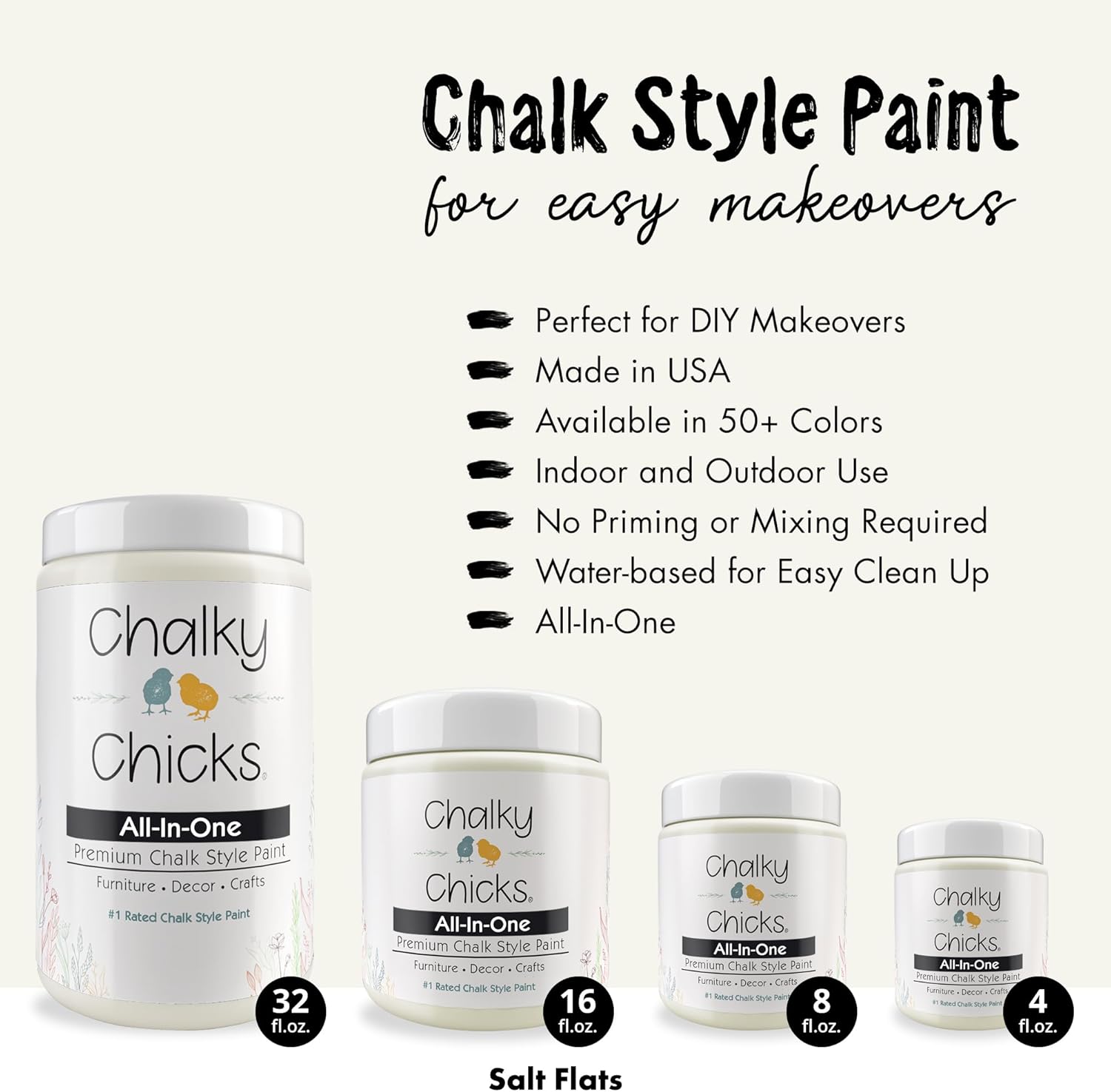 Chalky Chicks All-in-One Chalk Paint for Furniture or Cabinet - 4 Fl Oz - Matte Finish Salt Flats (Off White) for Metal, Wood Furniture Paint - No Sanding All-in-One for Home Decor & Crafts, USA Made