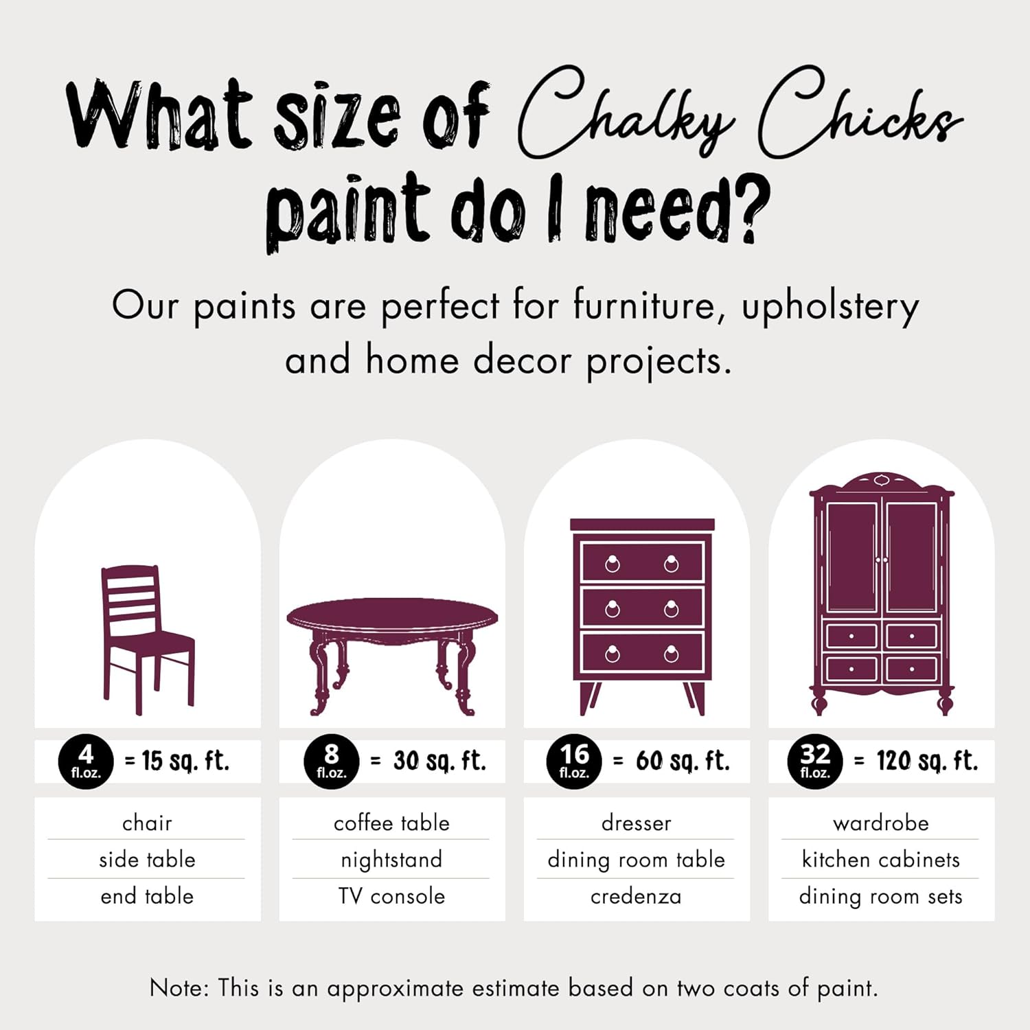 - TRANSFORM FURNITURE AND HOME DECOR WITH EASE: Chalky Chicks will save you time, money, and hassle. No sanding, priming, or multiple coats needed—just start painting your furniture with our cabinet paint no sanding or priming. Our paint is suitable for wood, metal, concrete, textiles, laminate, and more. Whether you prefer navy blue chalk paint, light blue paint, or green chalk paint, our chalk paint for furniture transforms any space with ease, making it ideal for DIY projects & craft painting.