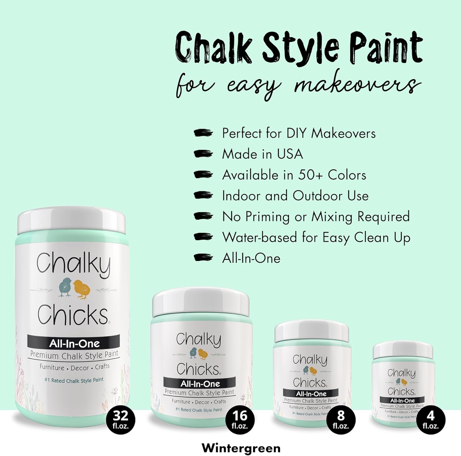 Chalky Chicks All-in-One Chalk Paint for Furniture or Cabinet - 4 Fl Oz - Matte Finish Wintergreen (Mint) for Metal, Wood Furniture Paint - No Sanding All-in-One for Home Decor & Crafts, USA Made