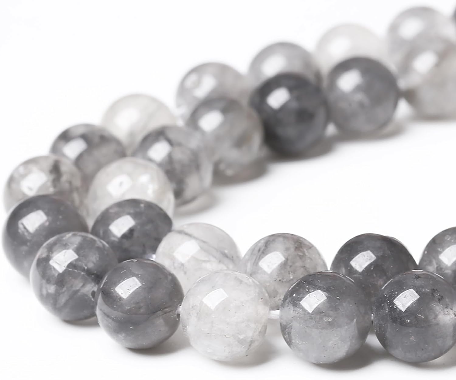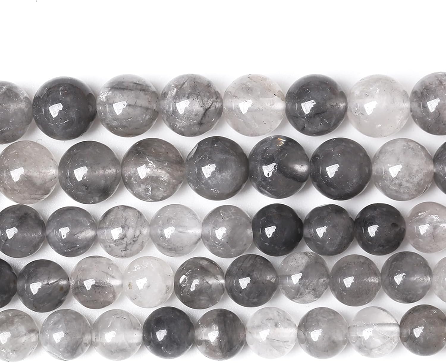 - 【Material】: Genuine Natural Grey Cloud Crystal Quartz Gemstones ,Round Loose Stone Beads,Energy Stone Healing Power,Help activate the mind