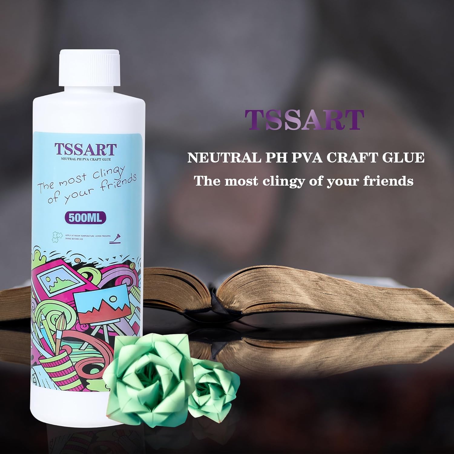 Neutral pH Craft Glue - 16.9floz Acid-Free PVA Formula Water Soluble Glue, Dries Clear and Flexible - Ideal for Arts, Paper, Photography, Scrapbooking and Book Binding - Flip Cap