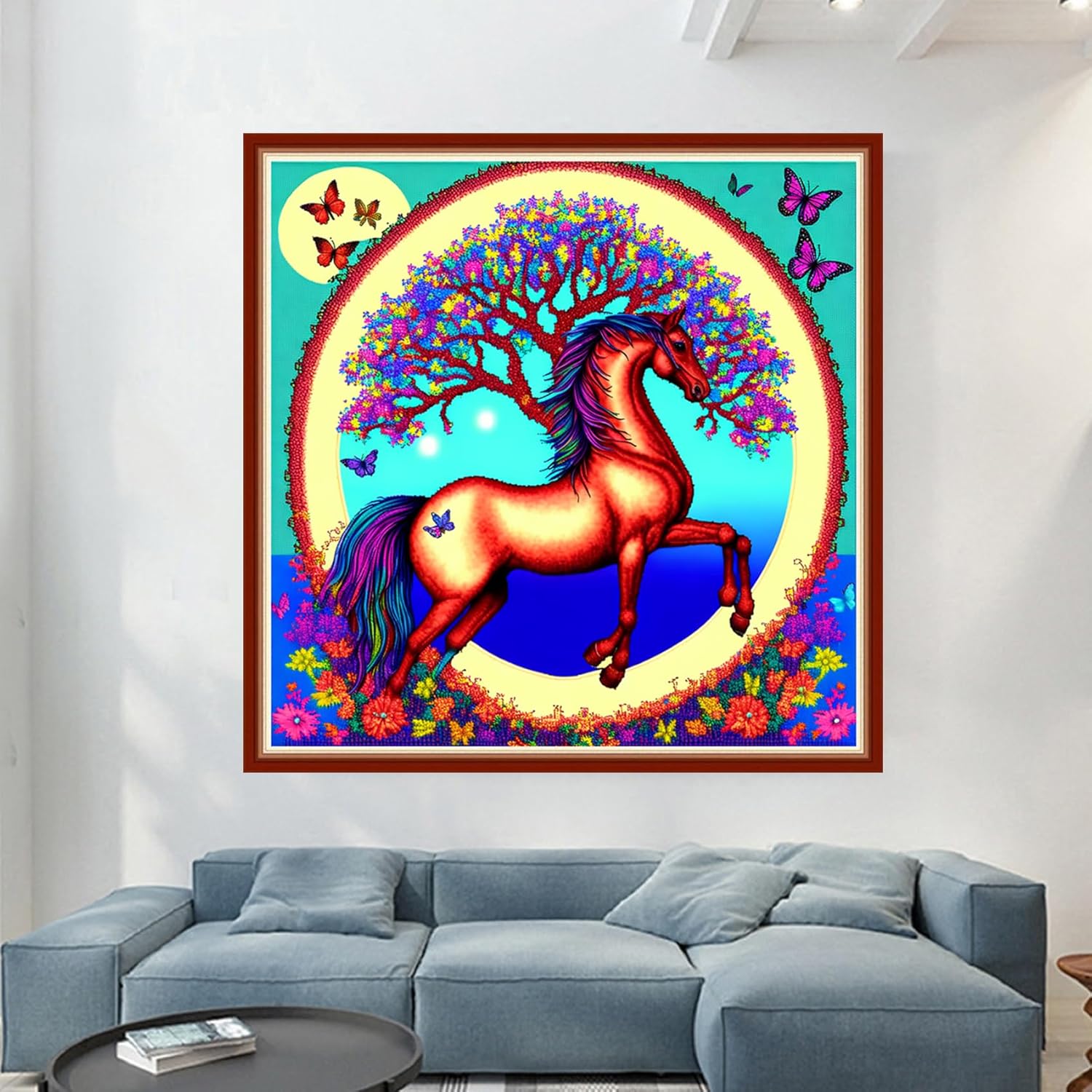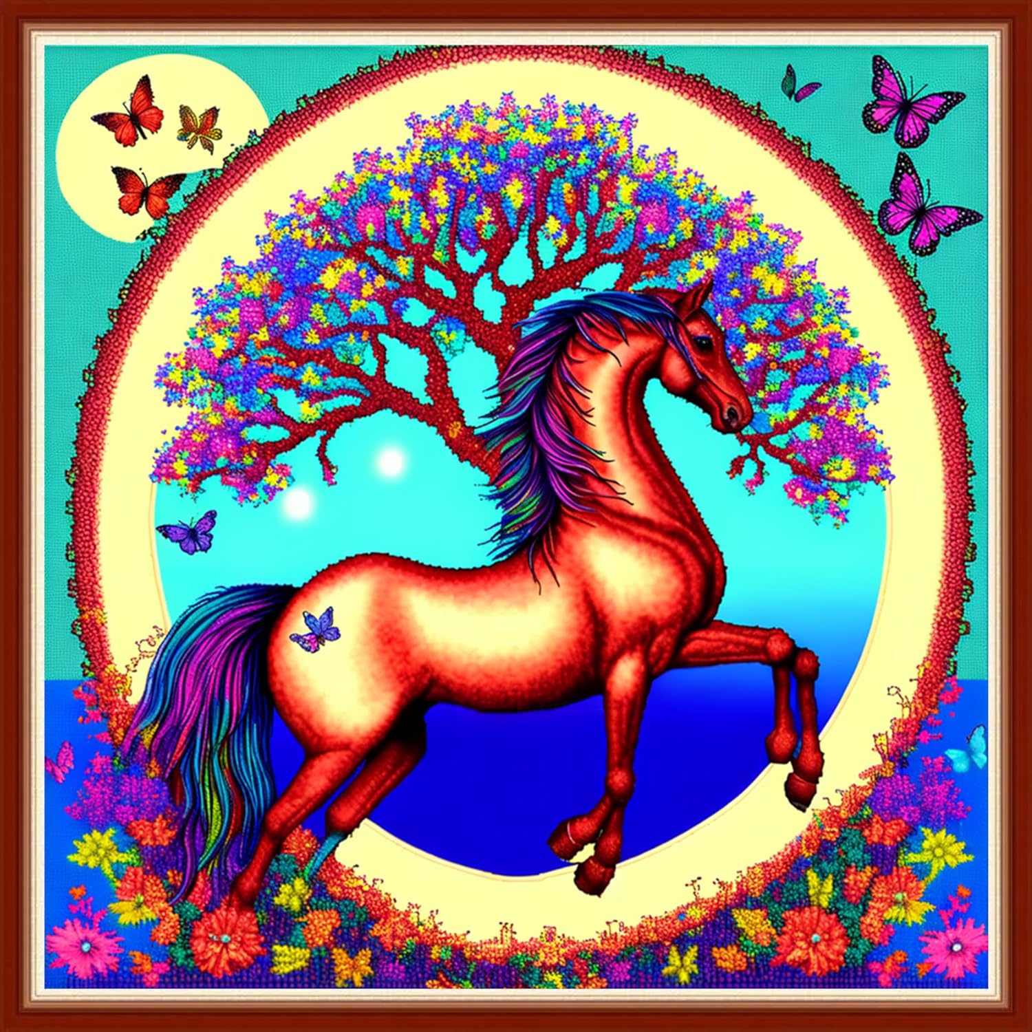 Dimensean Stamped Cross Stitch Kits Full Range of Embroidery Patterns Starter Kits for Beginners Adult or Kids DIY Cross Stitches Needlepoint Kits 11CT-Horse Wreath 17.7x17.7 inch