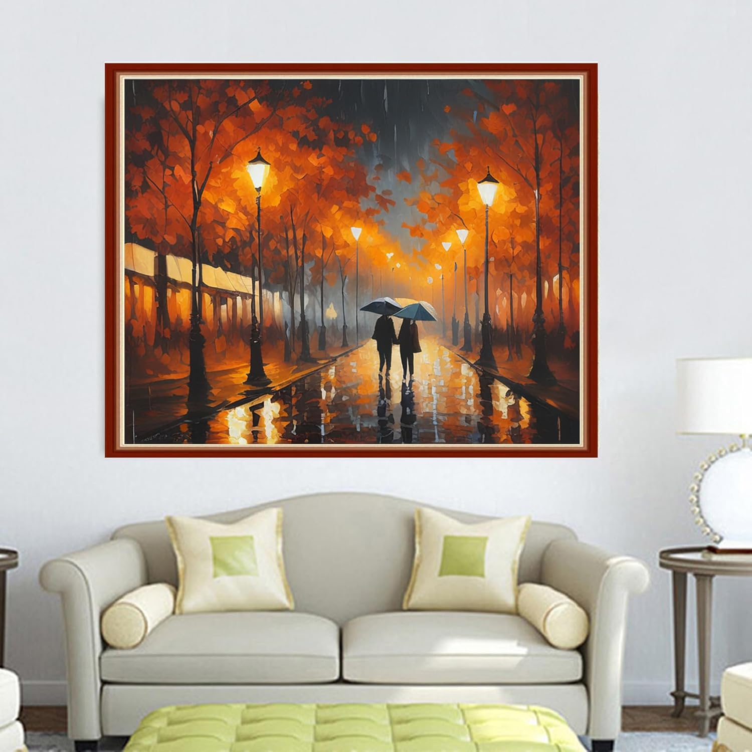 Dimensean Stamped Cross Stitch Kits Full Range of Embroidery Patterns Starter Kits for Beginners Adult or Kids DIY Cross Stitches Needlepoint Kits 11CT-Strolling Rainy Night 15.7x19.7 inch