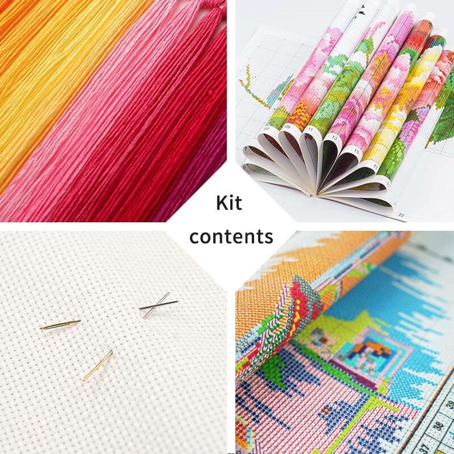 - 【Package】High Quality Cotton Threads×1(30% Extra);High Quality Cotton Fabric×1;Needle×2;Pattern Instructions×1;Embroidery Instructions ×1