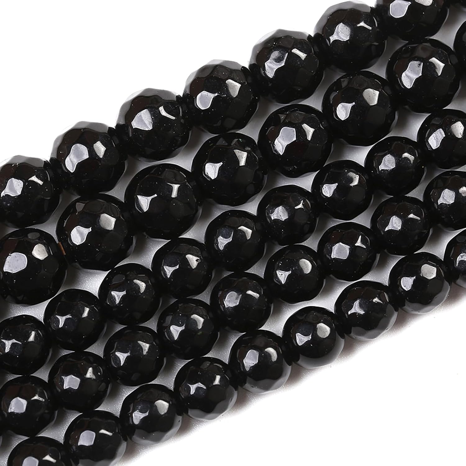45pcs 8mm Natural Faceted Black Agate Stone Beads for Jewelry Making Energy Healing Beads DIY Bracelet Necklace Accessories 15" (8mm, Faceted Black Agate)