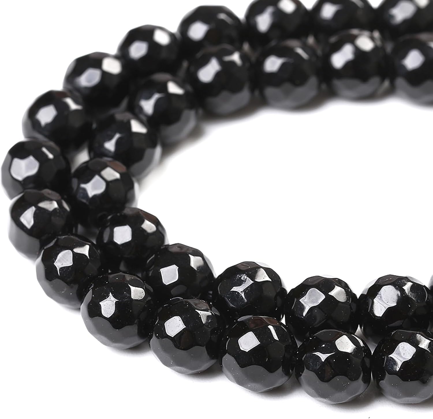 - 【Material】: Genuine Natural Faceted Black Agate Gemstones ,Round Loose Stone Beads,Energy Stone Healing Power,Help activate the mind