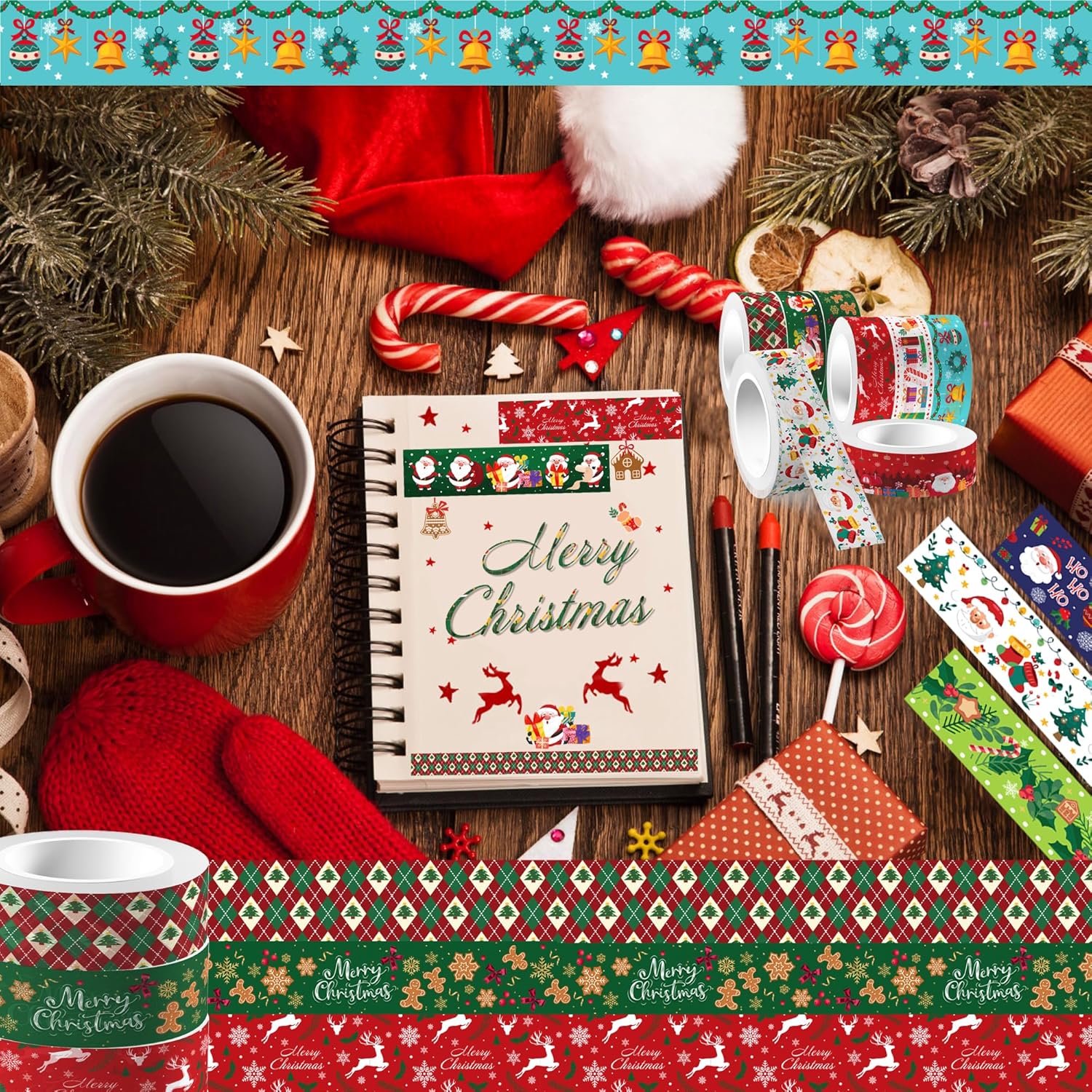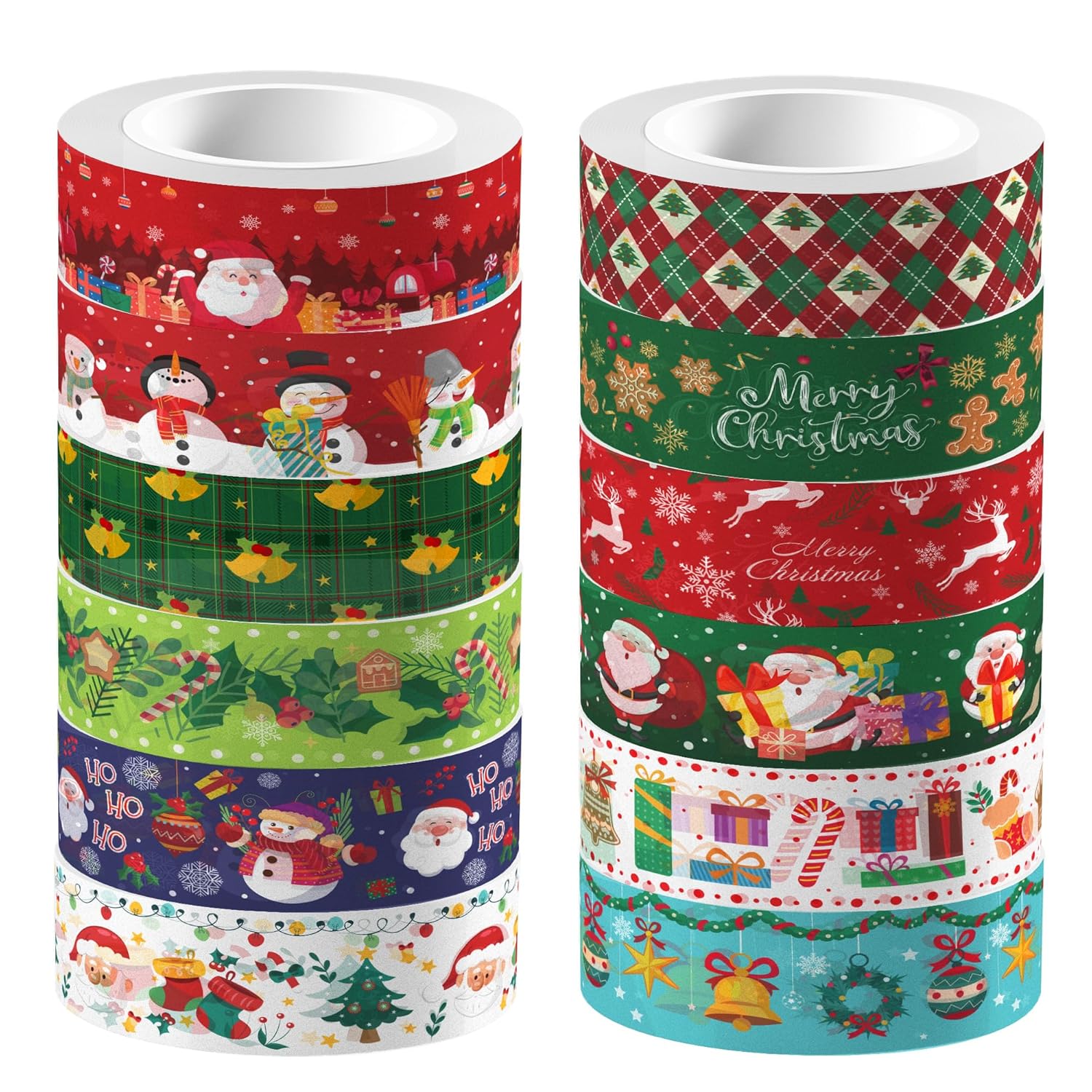 - Unique Design: Merry Christmas foliage Washi Tape Designed to be full of life and suitable for spring, this pattern is Christmas Tree Snowman Santa Claus elements. Each roll measures approximately 0.6 inch x 16.4ft,a total of 196.8ft,long enough for everyday and craft use and can be cut to length as needed. Perfect decoration for event or festival as well as gift envelope packaging, award sticker for kids.