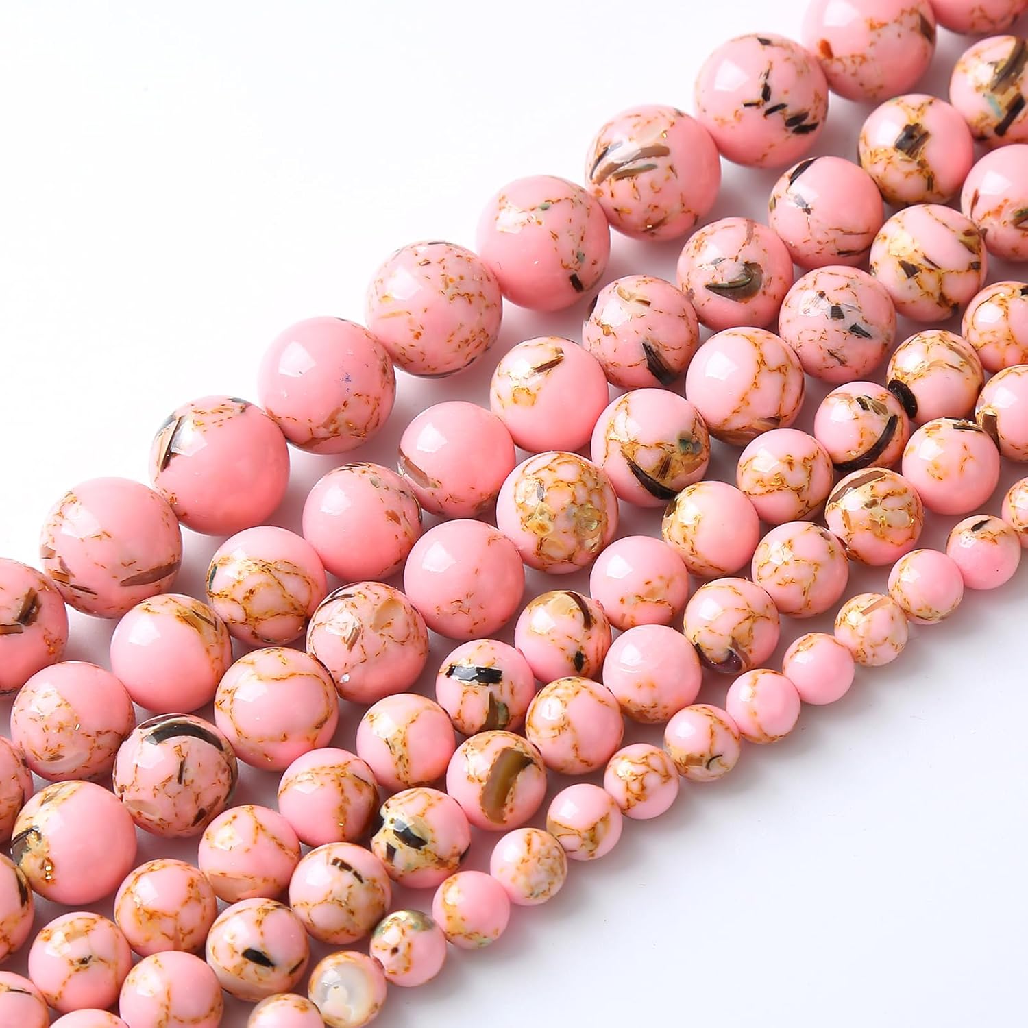 - 【Material】: Genuine Natural Pink Shell Turquoises Gemstones ,Round Loose Stone Beads,Energy Stone Healing Power,Help activate the mind