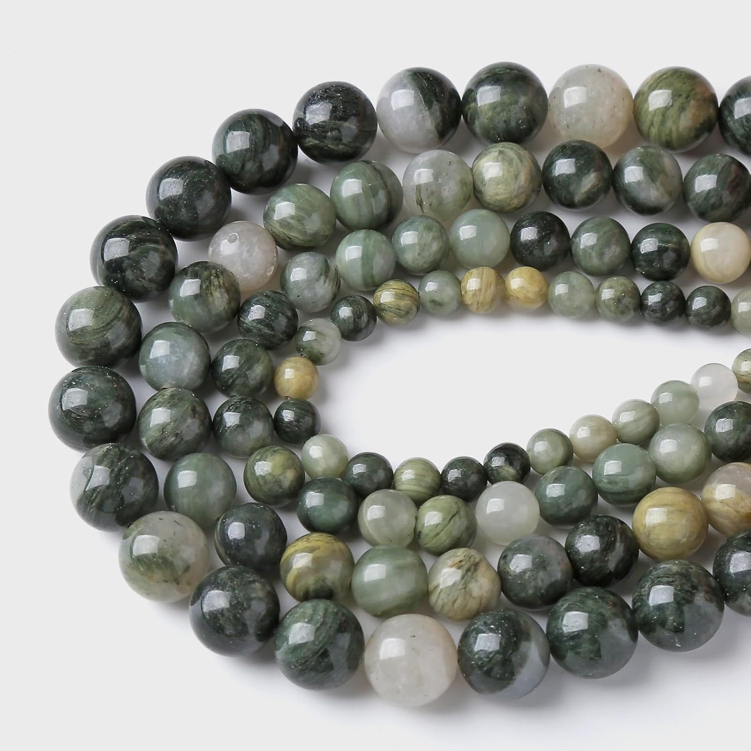 - 【Material】: Genuine Natural Green Hair Quartz Gemstones ,Round Loose Stone Beads,Energy Stone Healing Power,Help activate the mind