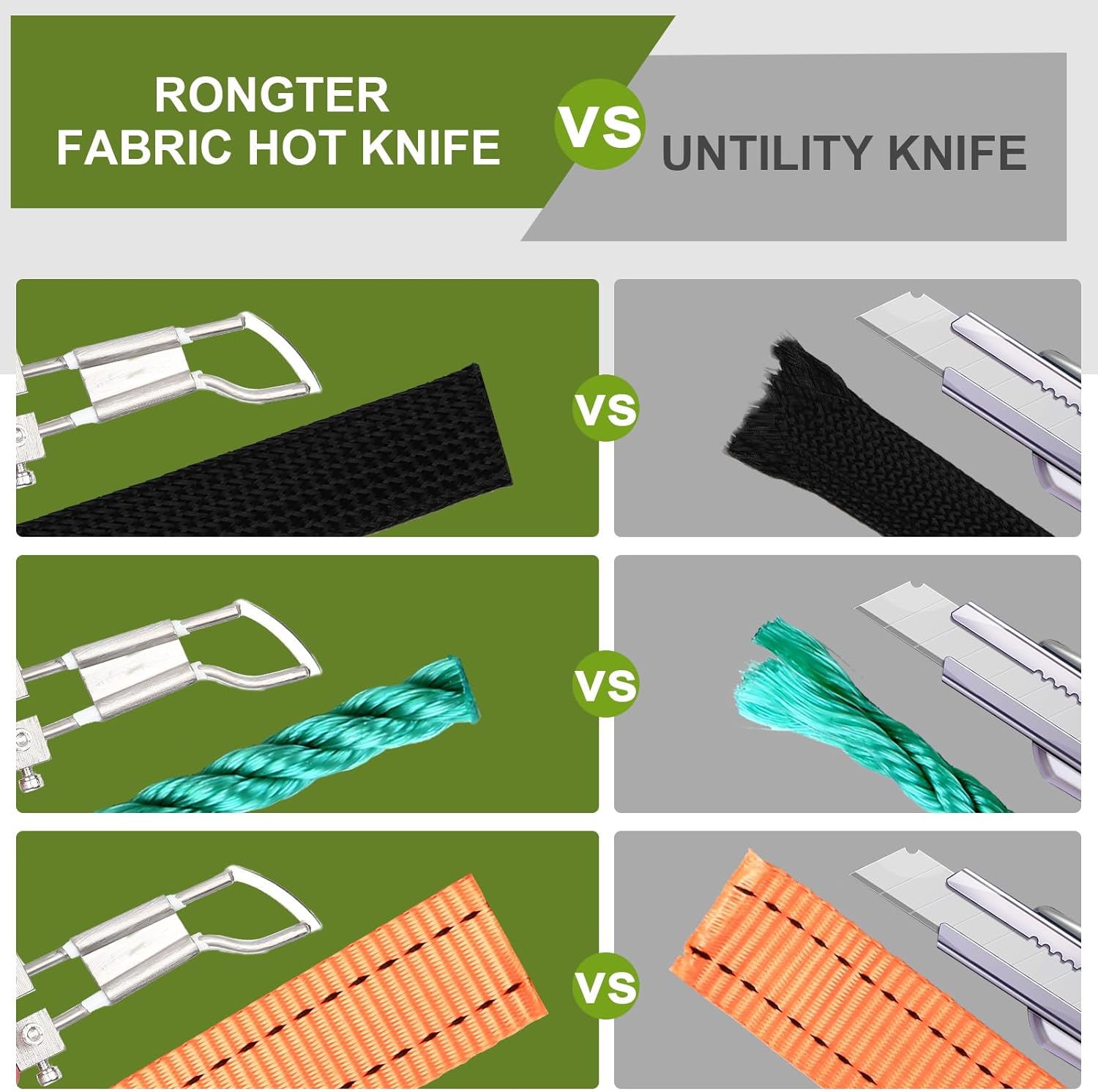 - 【CLEAN AND SMOOTH CUT】RONGTER electric hot knives cut fabrics and rope smoothly and fast, seal the edges clean, and leave no debris!The sharp blade allows the edges to fuse quickly to avoid loose lines and achieve silky cutting