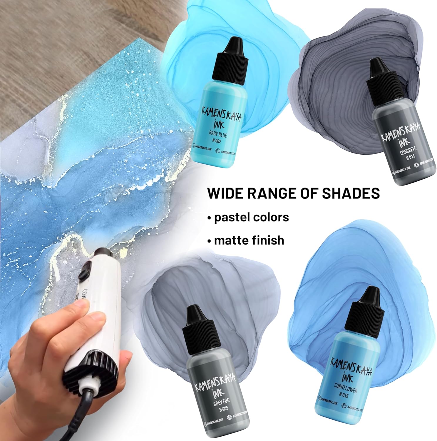 - Set composition: 4 inks 0.51 fl oz (15 ml) each of pastel alcohol ink (delicate pastel shade with velvety finish based on dye and pigment, where the pigment provides a dense and opaque layer, while the dye is responsible for the color)