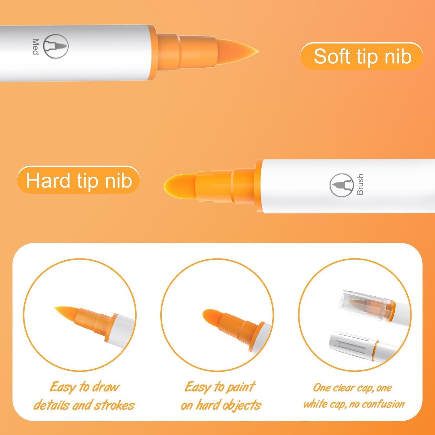 Acrylic Paint Marker Pens 24pcs, Dual Tip Pens With Soft and Hard Tips, Fine Point Acrylic Paint Markers for Wood, Canvas, Stone, Rock Painting, Glass, Ceramic Surfaces, DIY