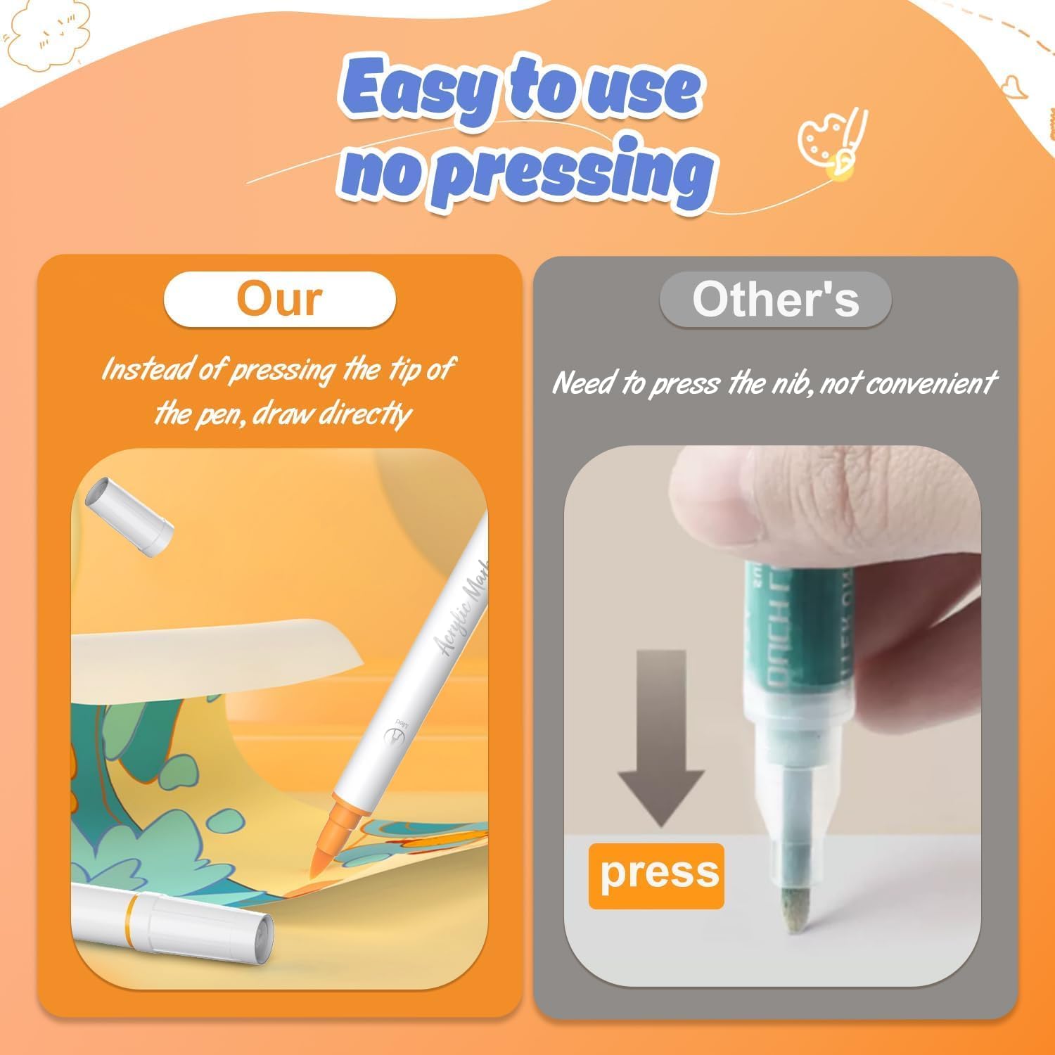 - Excellent Coverage: The ink of our acrylic marker pen possesses exceptional covering capability and saturation, enabling seamless marking and painting on surfaces of varying colors, without being affected by the underlying background. This attribute makes them an ideal choice for writing and drawing on dark or textured surfaces, ensuring that your artwork radiates with brilliance and clarity