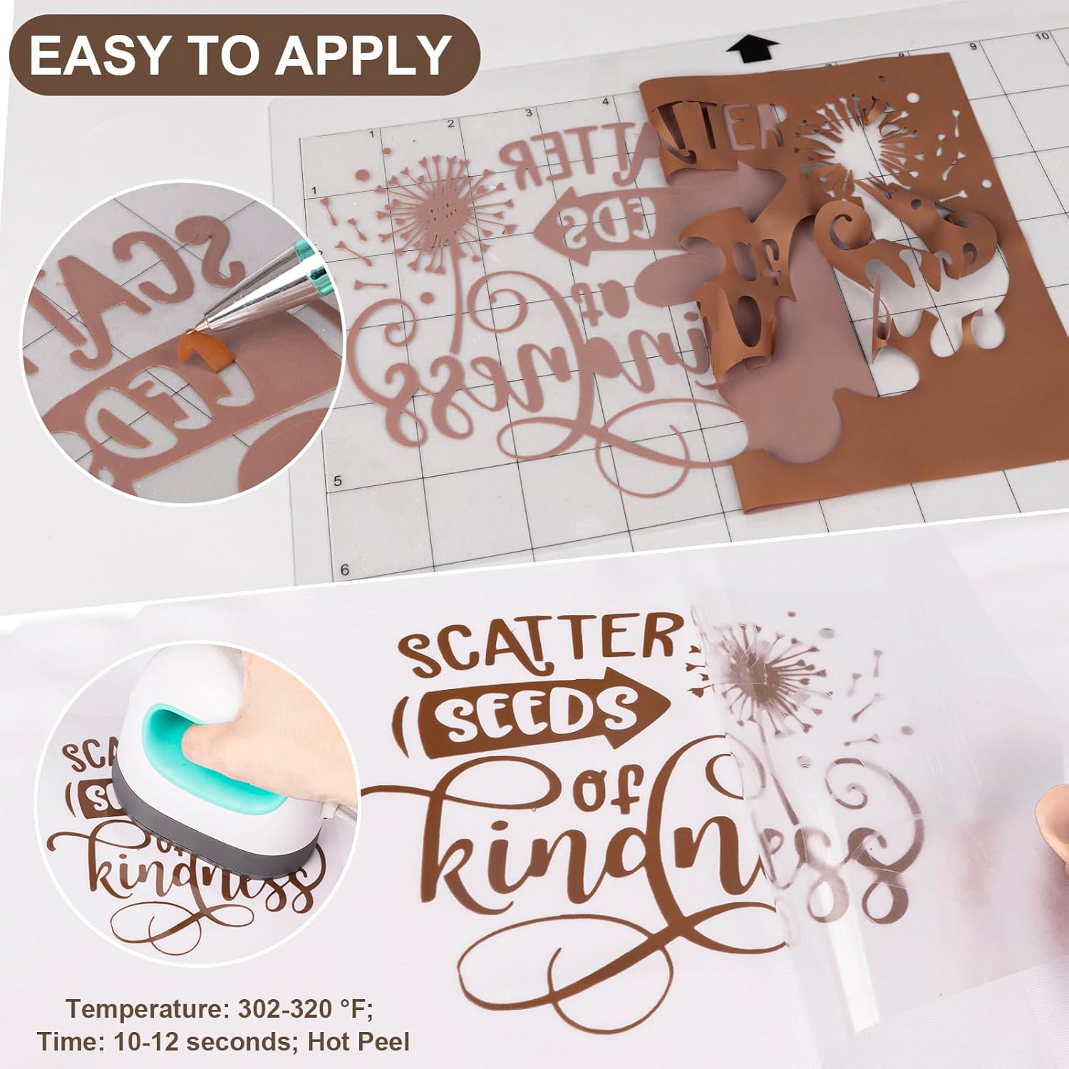 - ✂️EASY TO APPLY: Just use craft cutter and a home iron to get the job done. Apply for approximately 10-12 seconds at 302-320 °F (150-160 °C) and about 10 LBS of pressure. Be sure to cold peel.