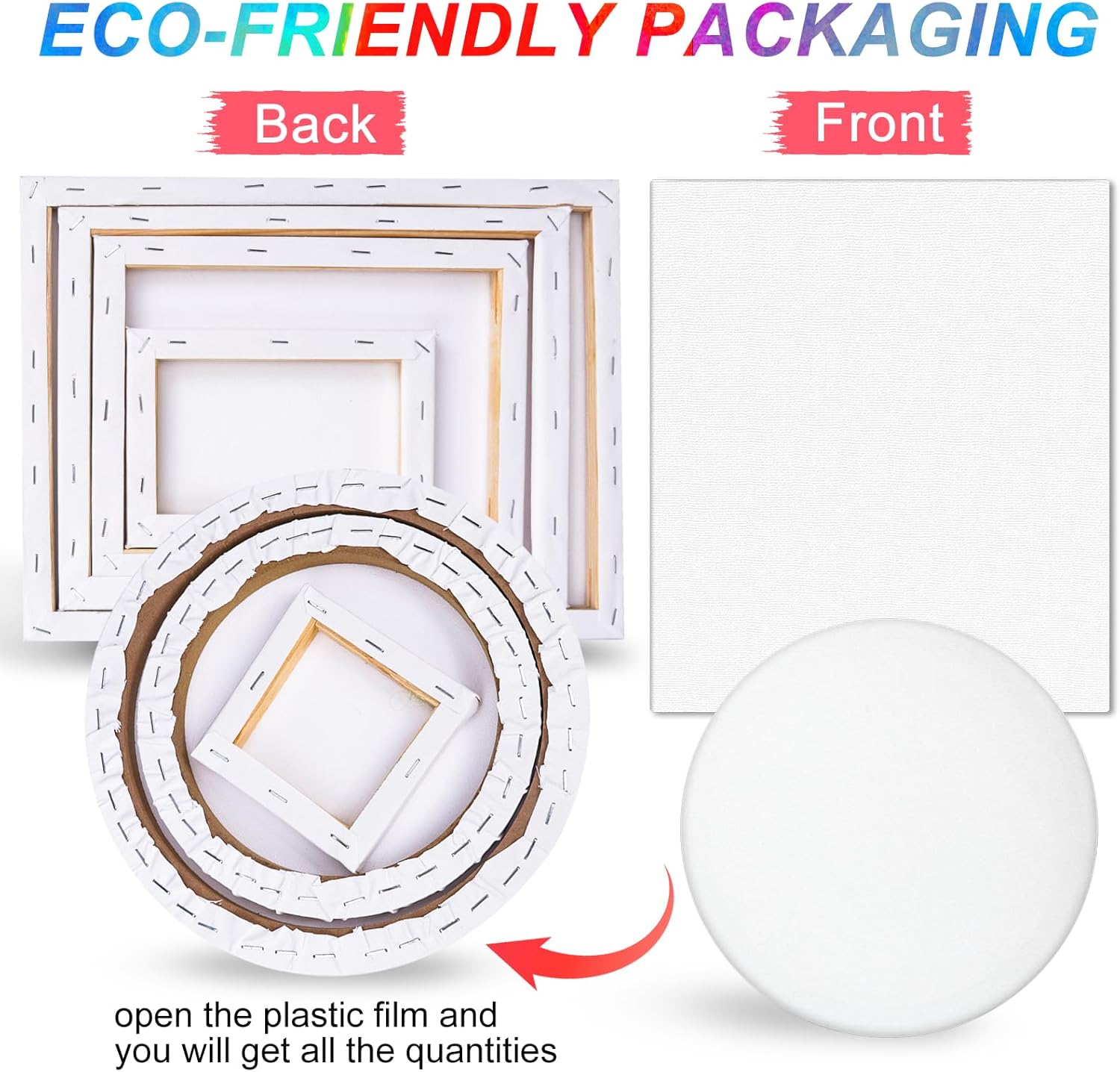 - PERFECT GIFT - It’s ideal for artists, students, teens, kids and painters of all levels. Package includes 7 Packs Stretched Canvases for Painting,Multi Size 11x14, 9.44x12, 8x10, 5x7, 4x4, Round Canvas with 8x8,10x10. Wonderful gift idea for your friends and families that enjoy painting!