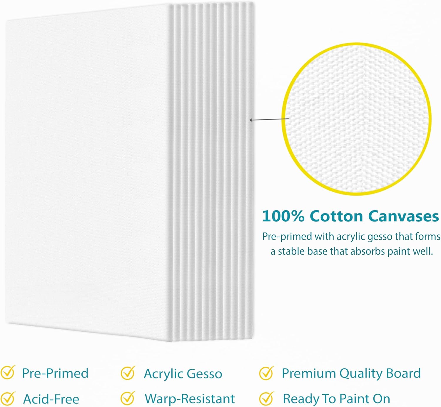 - 【 High Quality & Eco-Friendly 】 Crafted from 100% cotton, these blank canvases for painting are expertly pre-primed with non-toxic, acid-free acrylic gesso. This ensures your paint adheres smoothly, capturing and preserving the natural tones of your artwork. They capture and preserve the natural tones of your artwork, keeping colors vibrant and brilliant over time. These art canvas set provides the perfect foundation for creating lasting masterpieces!
