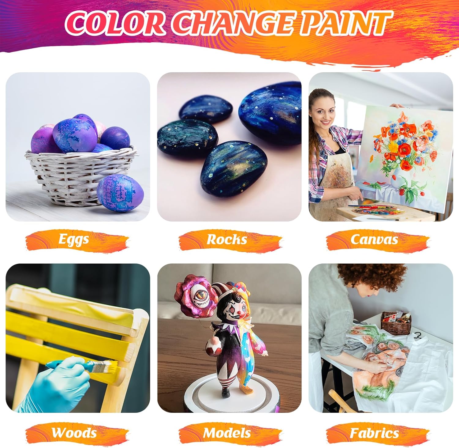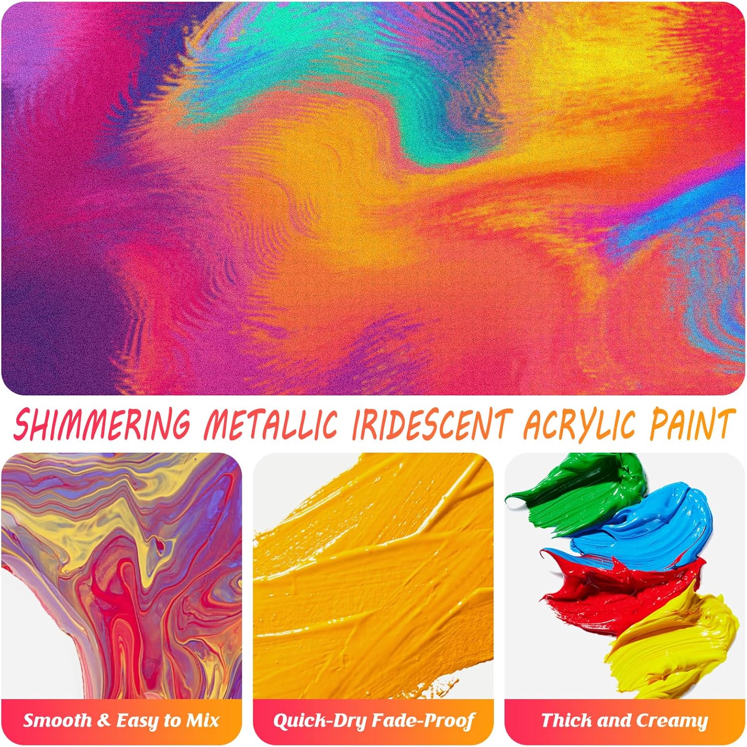 Caliart Iridescent Acrylic Paint with 12 Brushes, 24 Colors (59ml, 2oz) Art Craft Paints for Adults Artists Beginners Painters, Halloween Decorations Canvas Ceramic Wood Rock Painting Kit