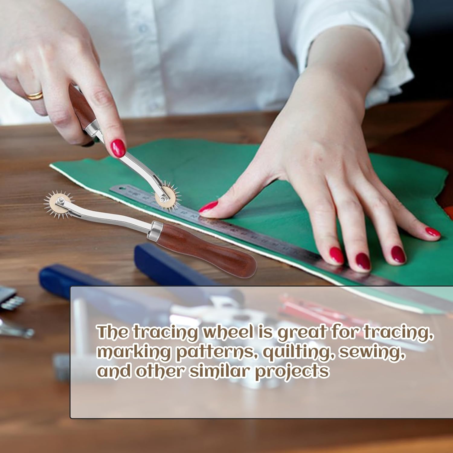 - Wide use: A handle tracing wheel is a great tool for tracing, transferring patterns, quilting, sewing, and all other similar projects be it with fabric, leather, or wood. Tracing Wheel Sewing Tool suitable for punching, perforating, aligning holes, can be used to mark.