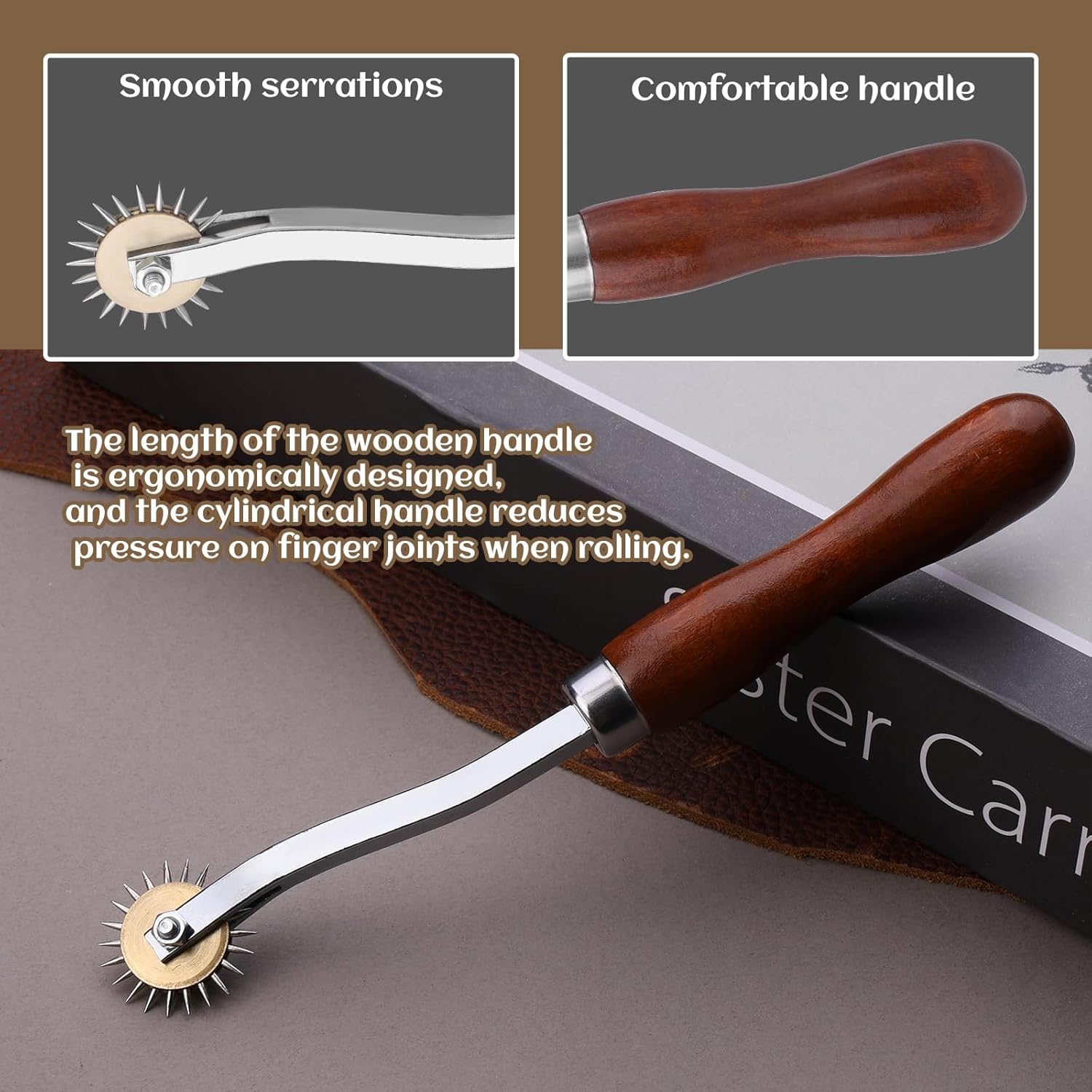LUNARM 2 PCS Tracing Wheel Sewing Tool - Professional Stitch Marking Spacer, 4mm Leather Needle Point Tracing Wheel with Wooden Handle for Arts and Leather Crafts