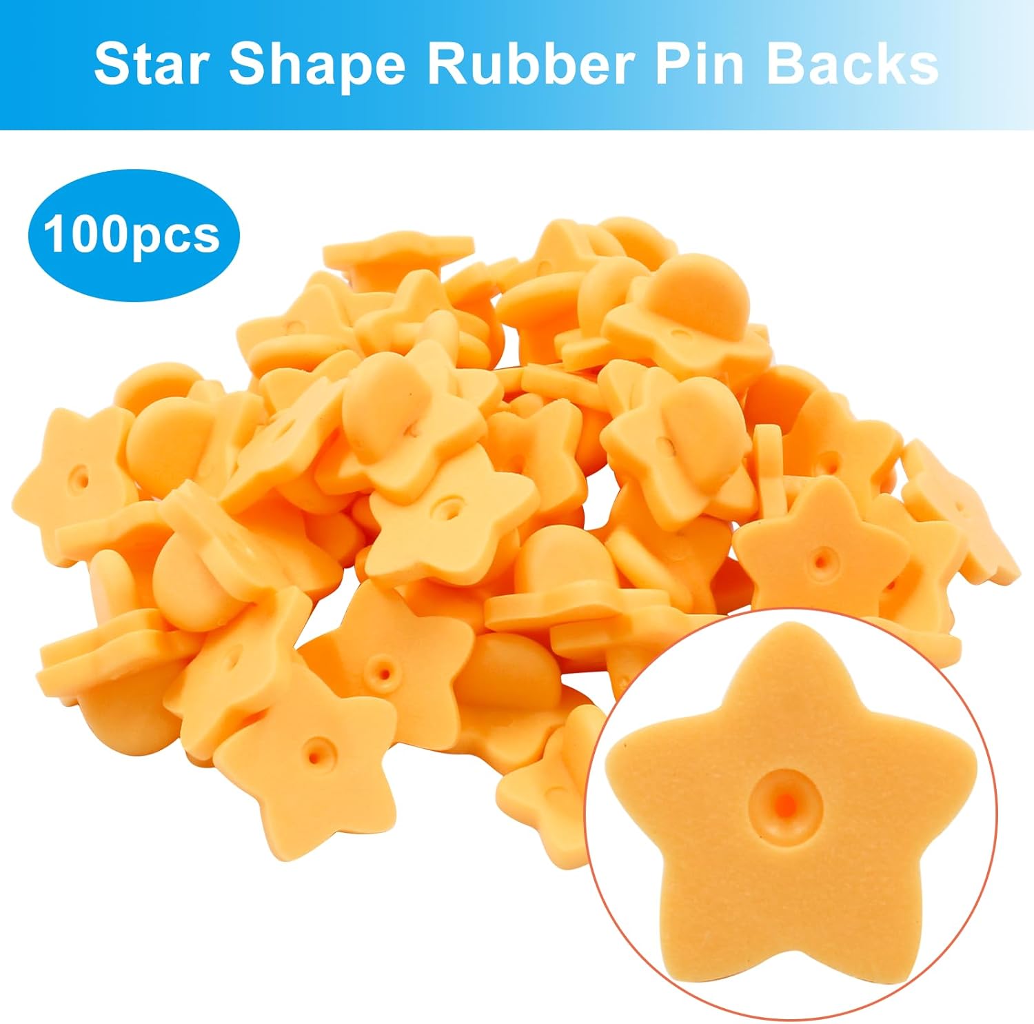100 Pack Star Shape Rubber Pin Backs, Lapel Pin Backing Locking Pin Keepers, Brooch Holder for Uniform Badge Hat Tie(Orange)