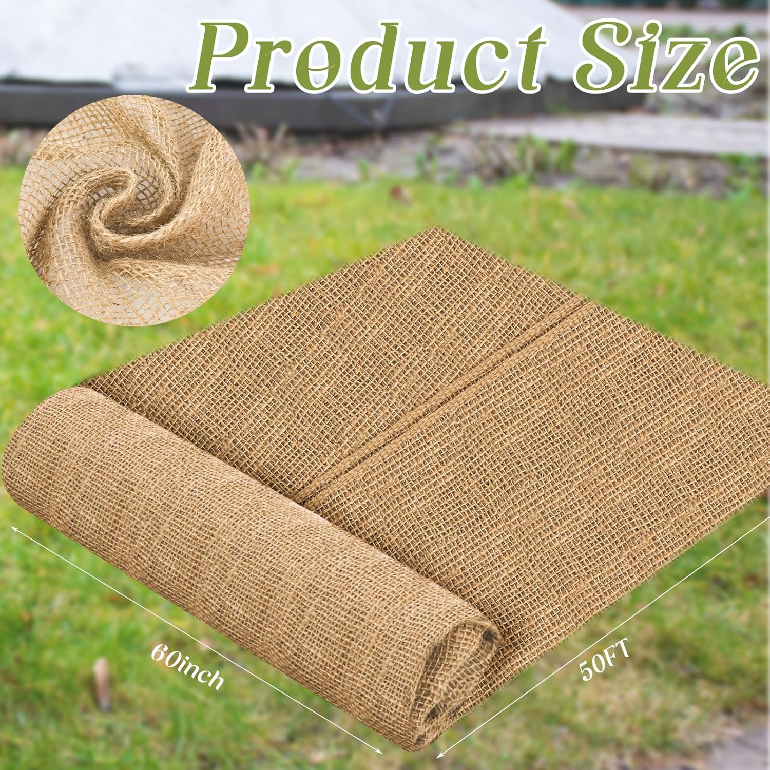 - Large Size: burlap fabric width about 60 inches length about 50 ft, conveniently applied to gardening, covering soil or as garden fabric weed barrier, tree warping; And easy to cut, giving you the freedom to apply it for wide ranging creative activities, applicable like garden decorations, wedding decorations, or even as an antiseptic for outdoor garden