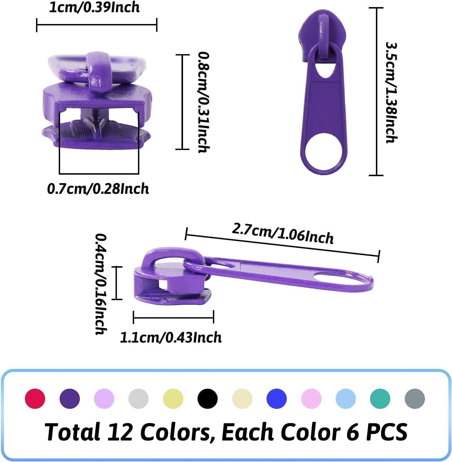 DOITEM 72Pcs Zipper Repair Kit - 5# Zipper Pull Rescue Kit for Clothing, Jackets, Purses, Luggage, Backpacks (12 Colors)
