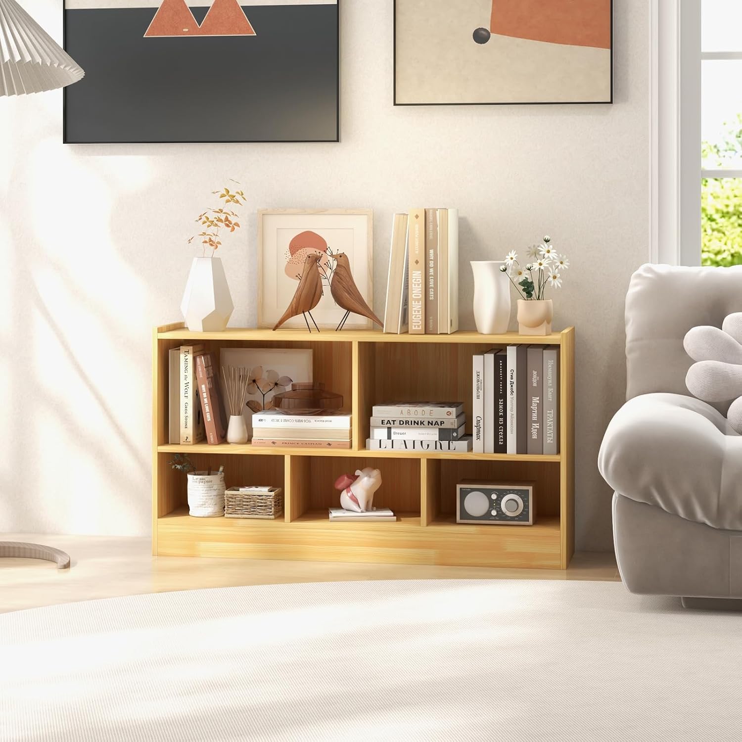 LOKO 2 Tier 5 Cube Bookcase, Open Shelf Storage Cabinet, Wooden Display Cabinet Shelf, Multipurpose Bookshelf for Living Room, Bedroom, Hallway, Home Office, Classroom (Yellow)
