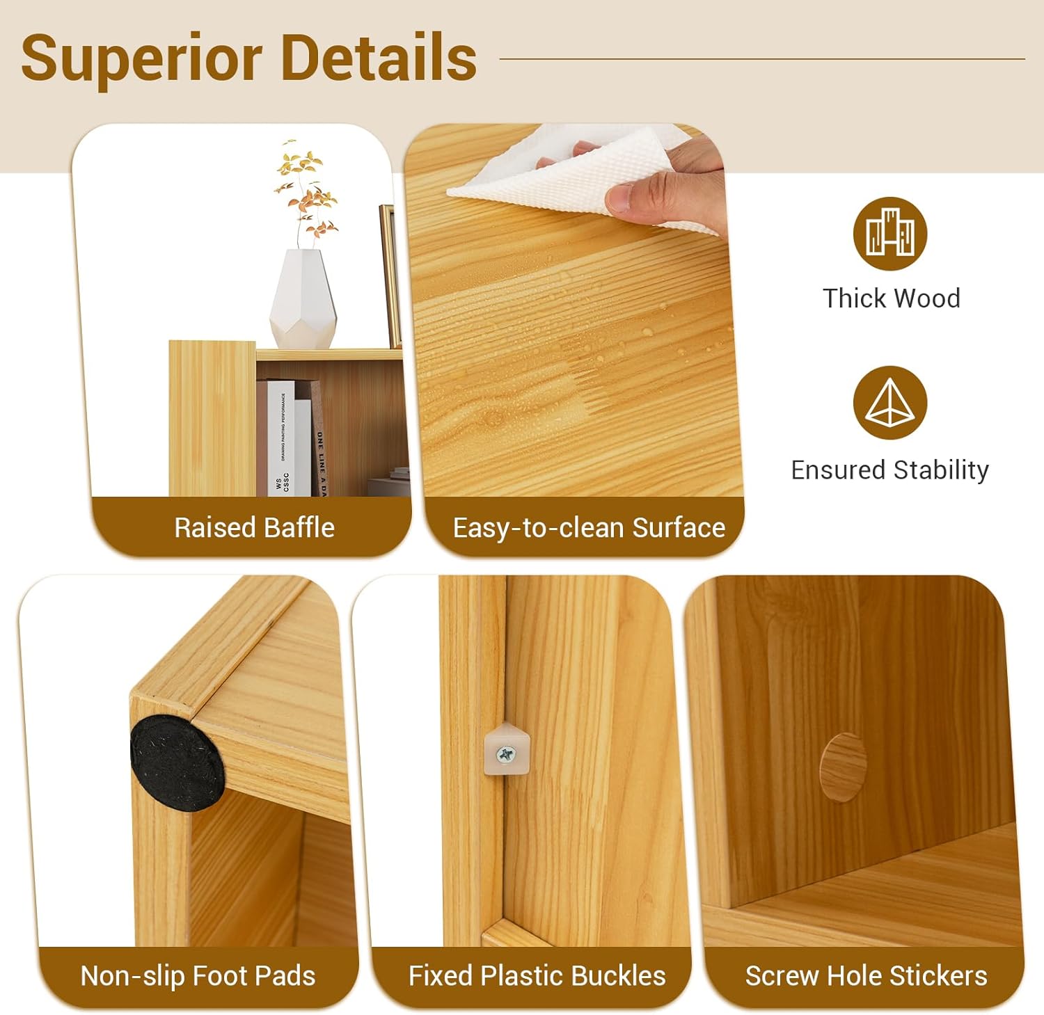 - Thoughtful Detail Design: The bookcase has non-slip feet on the bottom to protect the floor from scratches, and the base is 4 inches high thus blocking stains from the floor. In addition, the edges and corners of the horizontal cabinet are rounded to protect you and your family.