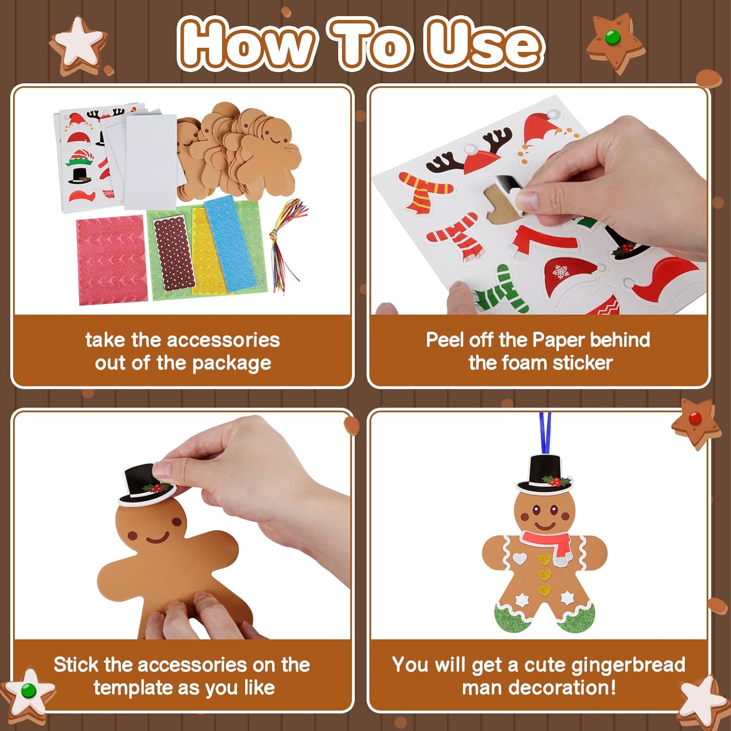 - DIY Craft Project for Kids:Christmas gingerbread man craft kit for kids is suitable for children over 3 years old.rich colors can develop children's ability to recognize patterns and shapes,it is helpful to exercise children's hand-eye coordination, improving their practical skills and enriching their imagination,creativity, concentration and hands-on ability.
