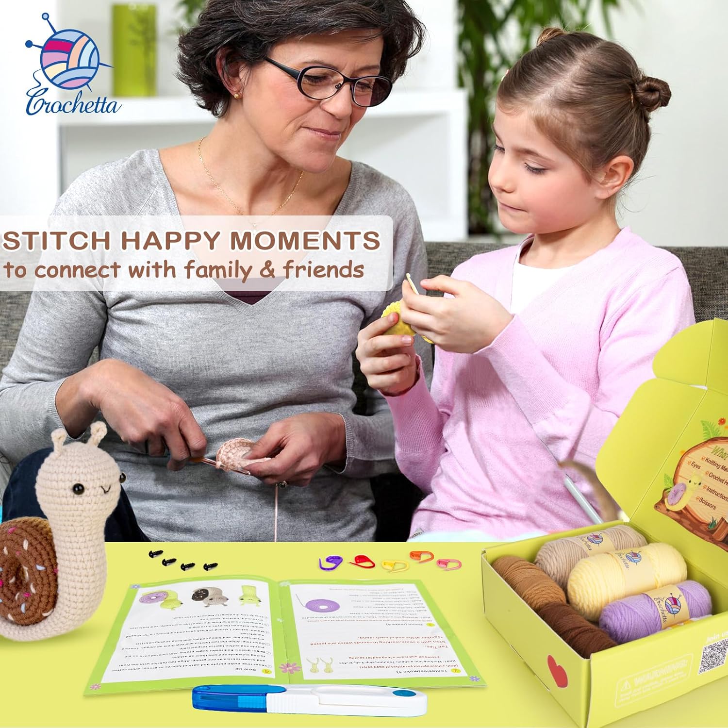 Crochetta Crochet Kit for Beginner, Crochet Starter Kit w Step-by-Step Video Tutorials, Learn to Crochet Kits for Adults & Kids, DIY Knitting Supplies, 2-Pack Snail Couple (40%+ Yarn Content)