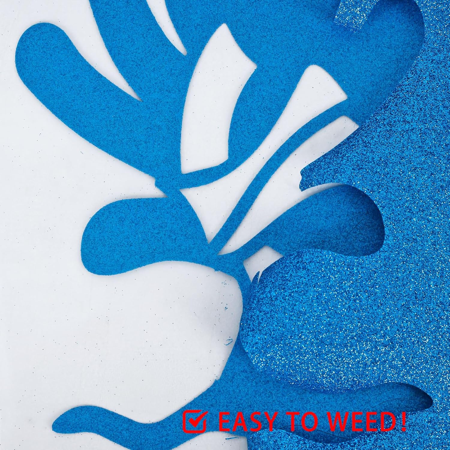 - EASY TO CUT & WEED & TRANSFER: Our blue glitter HTV Vinyl rolls is sensitive to temperature and pressure, which can be quickly and easily to weed and peel. It is compatible with all cutter machines, most heat presses and household irons on the market, and perfect for 12x12" and 12x24" cutting mats. You can easily apply adhesive backing HTV to fabric using a hot iron or hot press. Please note that it is warm peel