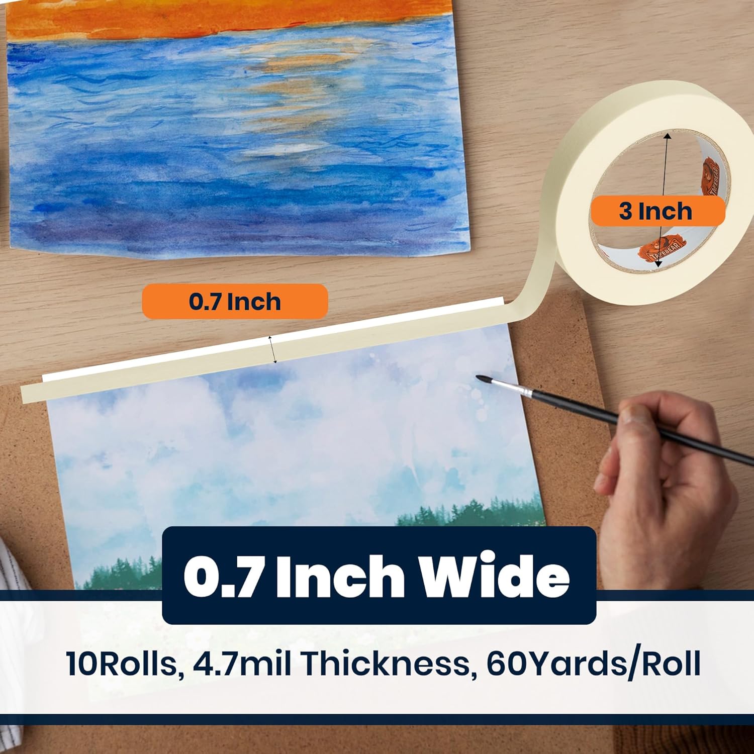 TAPEBEAR General Purpose Masking Tape 0.7 Inches x 60 Yards, Beige White Painters Tape for Painting, Labeling, DIY Arts Crafts, Home Office School Projects, 10 Rolls