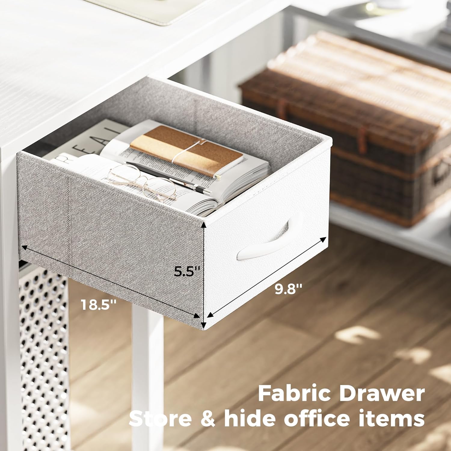- ăDesk With StorageăThe desktop and 2 storage shelves on the side allow you to store unlimited office supplies. The pc tower can be placed on the bottom shelf and there is a fabric drawer to store stationery and other privacy items. Super practical design!