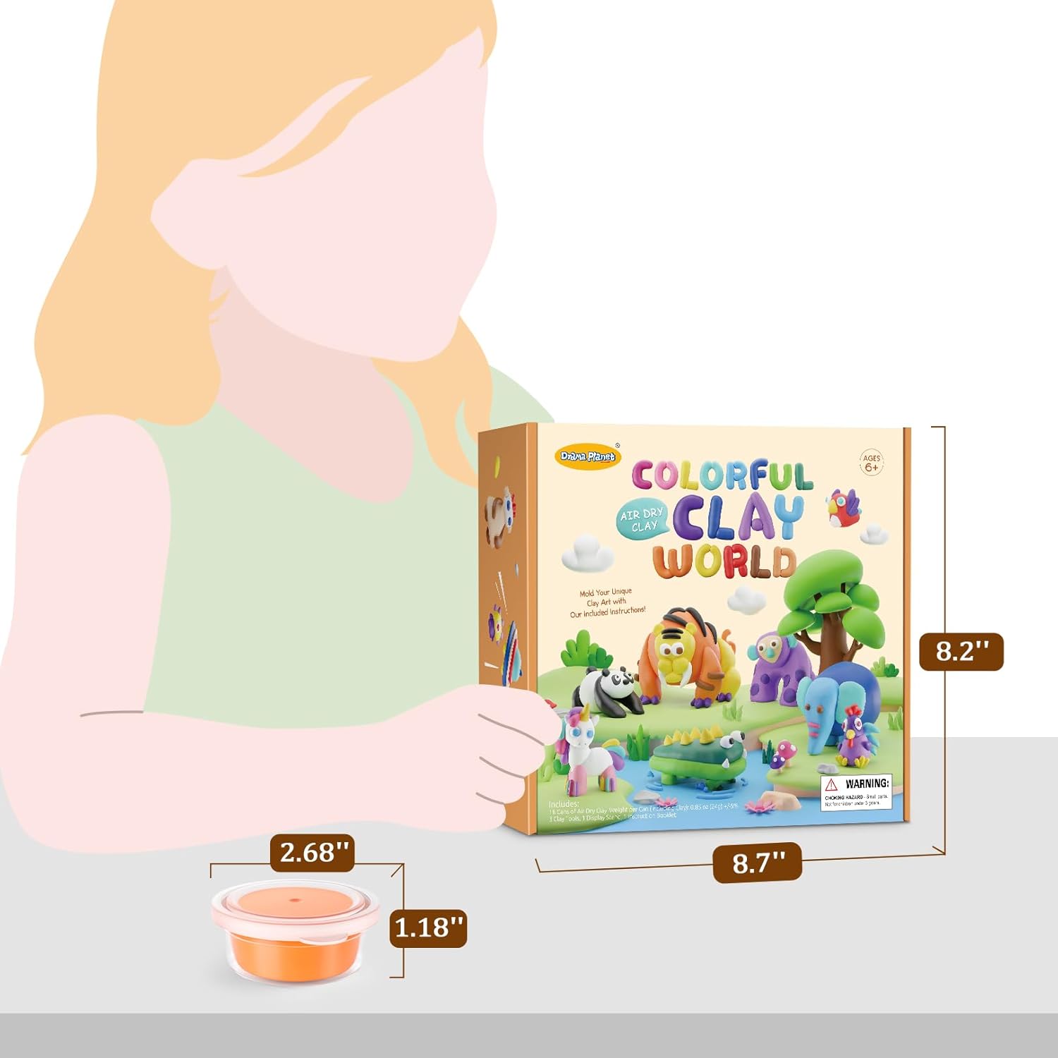 - Child-Friendly Clay: Soft and non-sticky, our air-dry clay is designed for young hands to mold with ease. No baking required - it dries naturally in 24 hours. Each color comes in a sealed container for easy and neat storage.