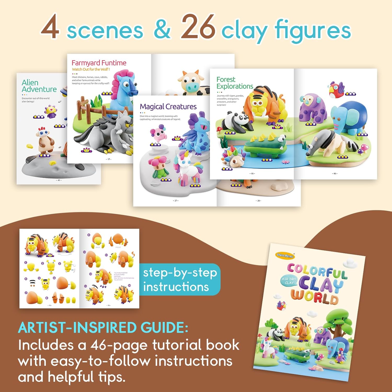 - Artist-Inspired Guide: Delve into 4 scenes with step-by-step tutorials for 26 clay figures, designed by clay artists, progressing from simple to advanced. Tailored for young learners of all skill levels.