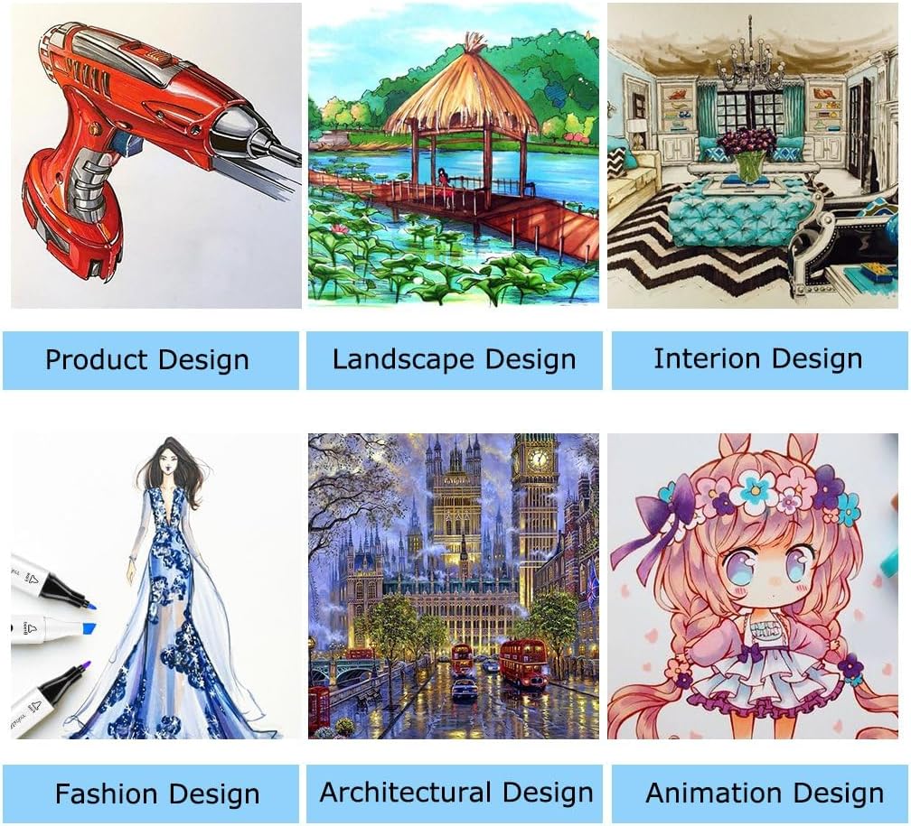 - 167 Vibrant Colors + 1 Free Blender. Valued artist markers set for adults coloring, artist sketching, illustration, drawing, calligraphy lettering beginners, highlighting, underlining, card making, architectural design, advertising rendering, landscape, and other forms of comic design etc.