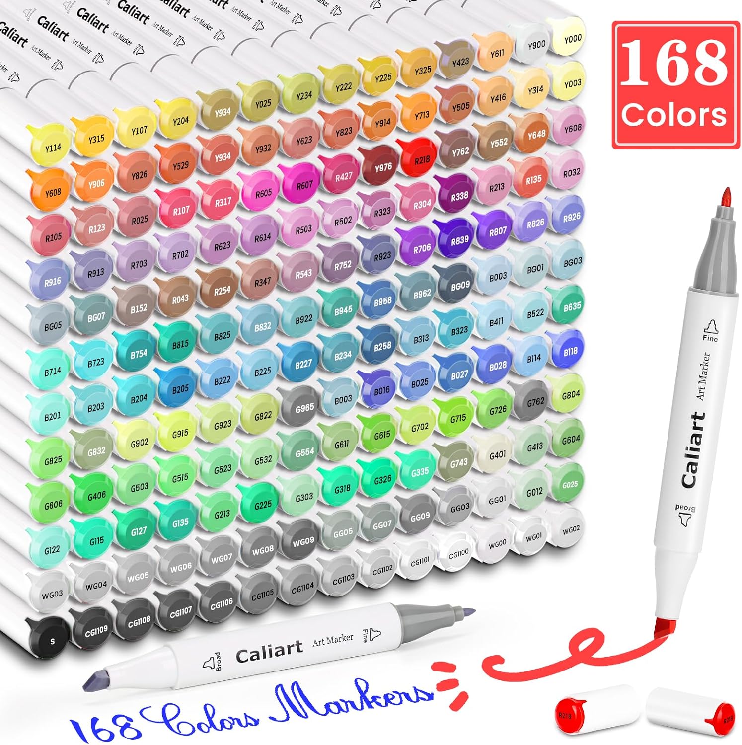 Caliart Markers, 168 Colors Dual Tip Art Markers Sketch Pens Permanent Alcohol Based, with Case for Adult Artist Halloween Drawing Sketching
