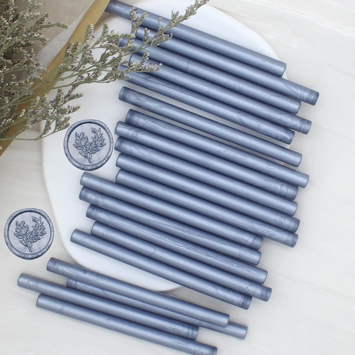 Grey Blue Wax Seal Sticks 20pcs, Glue Gun Sticks for Seal Stamp, Premium Sealing for Envelope Letter Wedding Invitation Craft Adhesive, Great Gift Ideas (Mini Size)