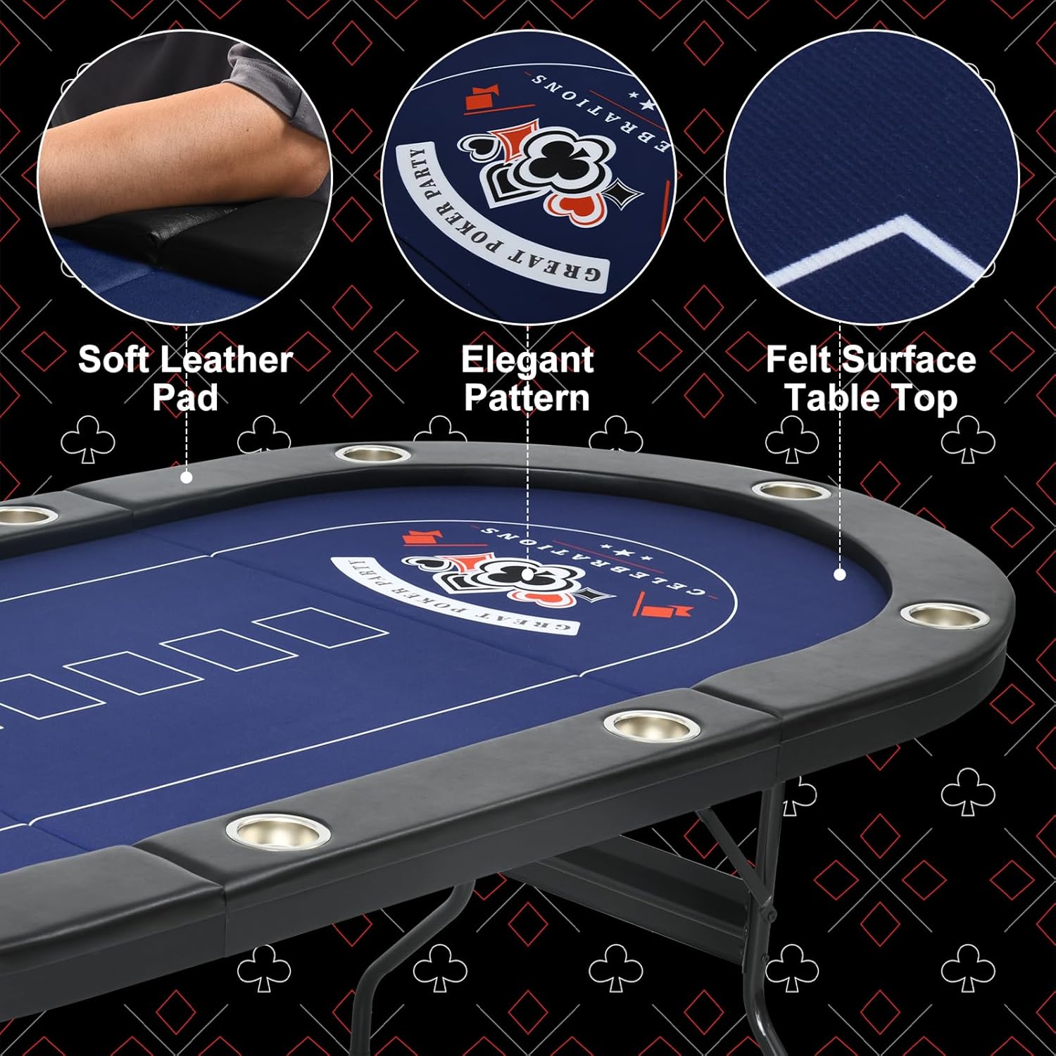 - Large 10-Player Poker Table: With an impressive length of 84 inches, It can accommodate 10 people to play, It will make you addicted to all Great classic casino games like texas Hold 'em, blackjack, craps, board games, and many other series' favorite card games