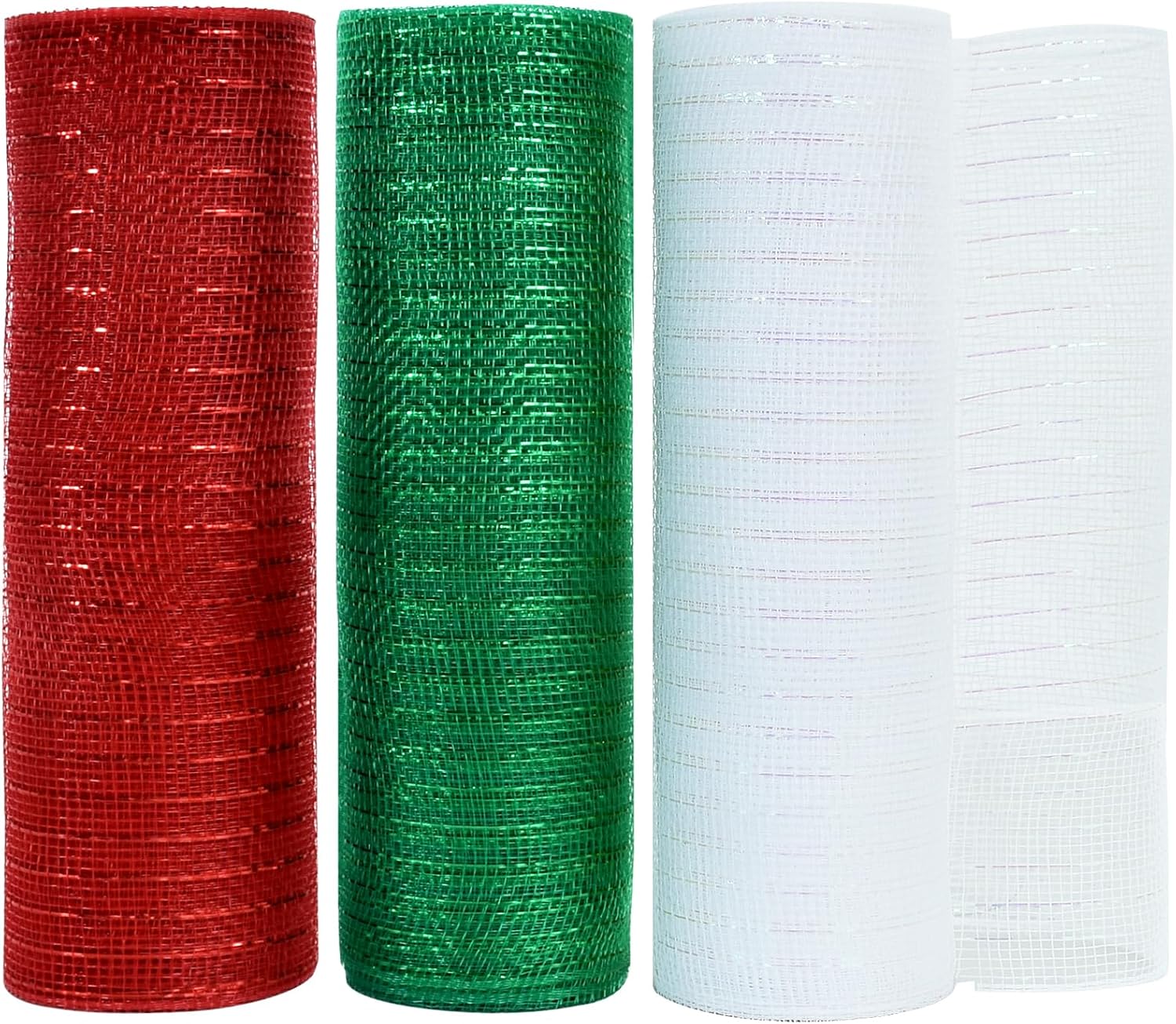 TONIFUL 3 Roll 10 Inch Red White and Green Decorative Mesh Ribbon Rolls, Fabric Mesh with Foil for Wreaths Front Door Decor Christmas Festival Party Accessories Party Decoration Supplies (10yds/roll