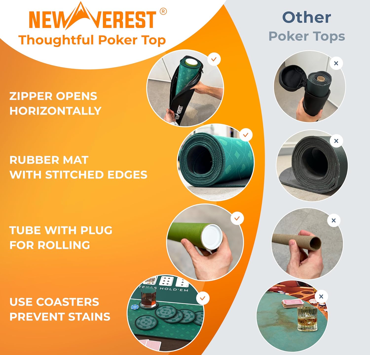 Newverest Poker Table Top 70" x 35", Texas Hold'em Poker Mat for Home Game Nights Up to 10 Players, Casino| Poker Topper Cloth for Tables in Zipper Storage Bag with 8 Coasters in Poker Gift-Ready Box